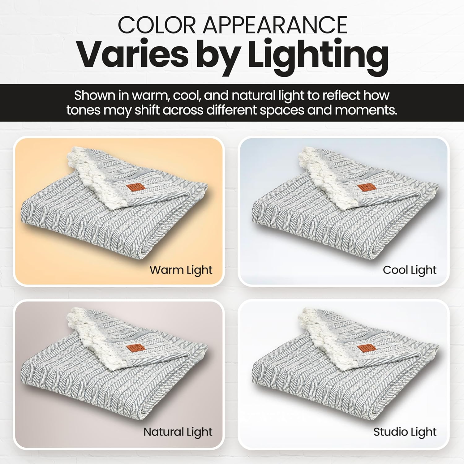 - CELEBRATE SUSTAINABLE STYLE: Made in Turkiye with recycled cotton, this couch throw blanket brings eco-conscious comfort to your home; the soft weave and fringe detail give this couch blanket a rustic, decorative touch that layers beautifully in any space