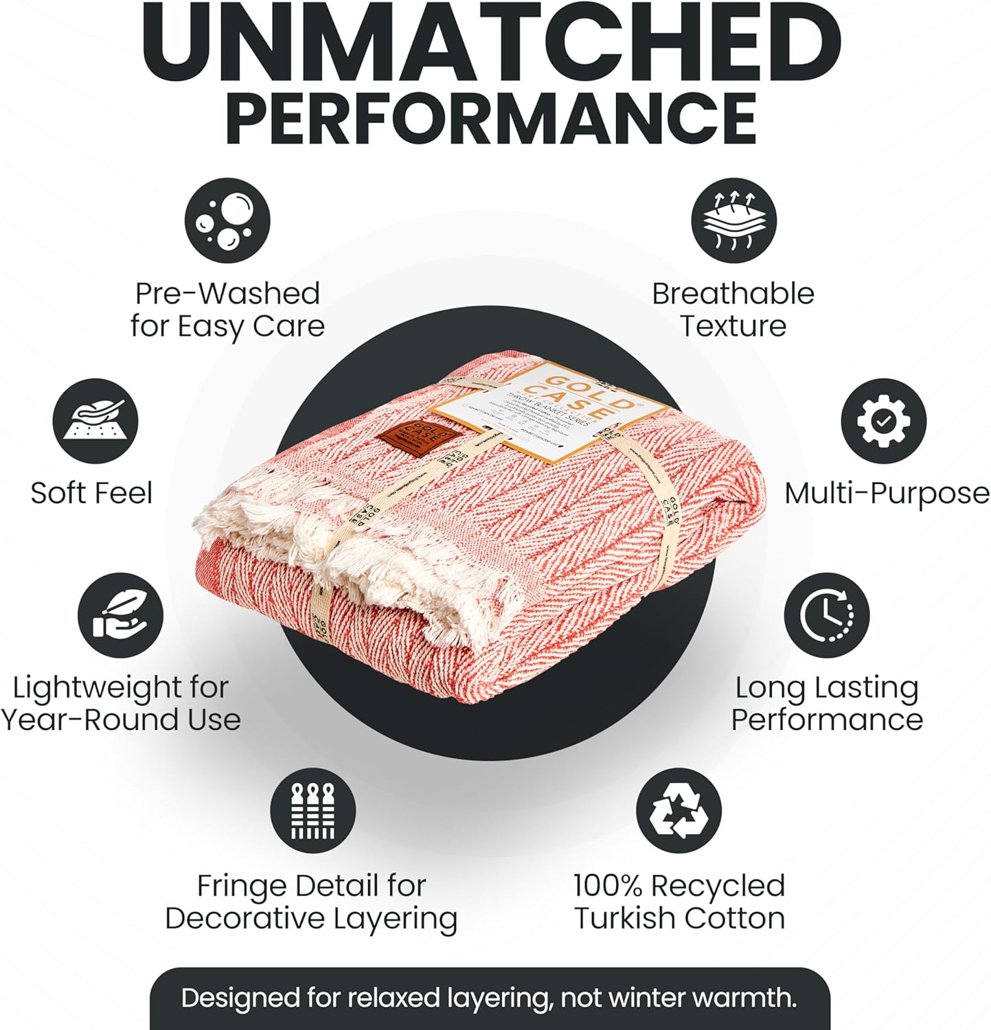 Gold Case Throw Blanket for Couch – 100% Recycled Turkish Cotton Blankets & Throws – Elegant Decorative Throw Blankets for Living Room Sofa – Woven Throws for Couch – Vintage Orange – 50x60