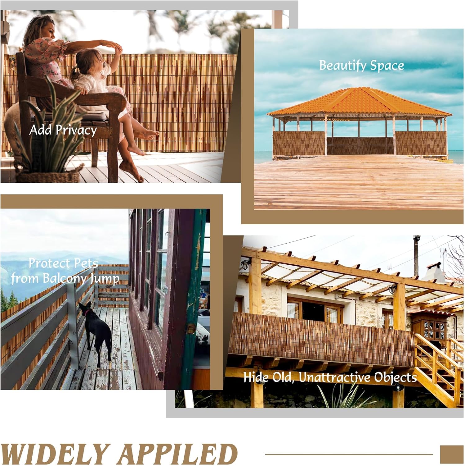 - 【FRIENDLY NOTES】- Please note: As these fences are natural-reed- made, the color, width or length of screen roll will slightly vary.Reed screen curtain might be slight burs or spots on the surface of natural reed, please install with care.