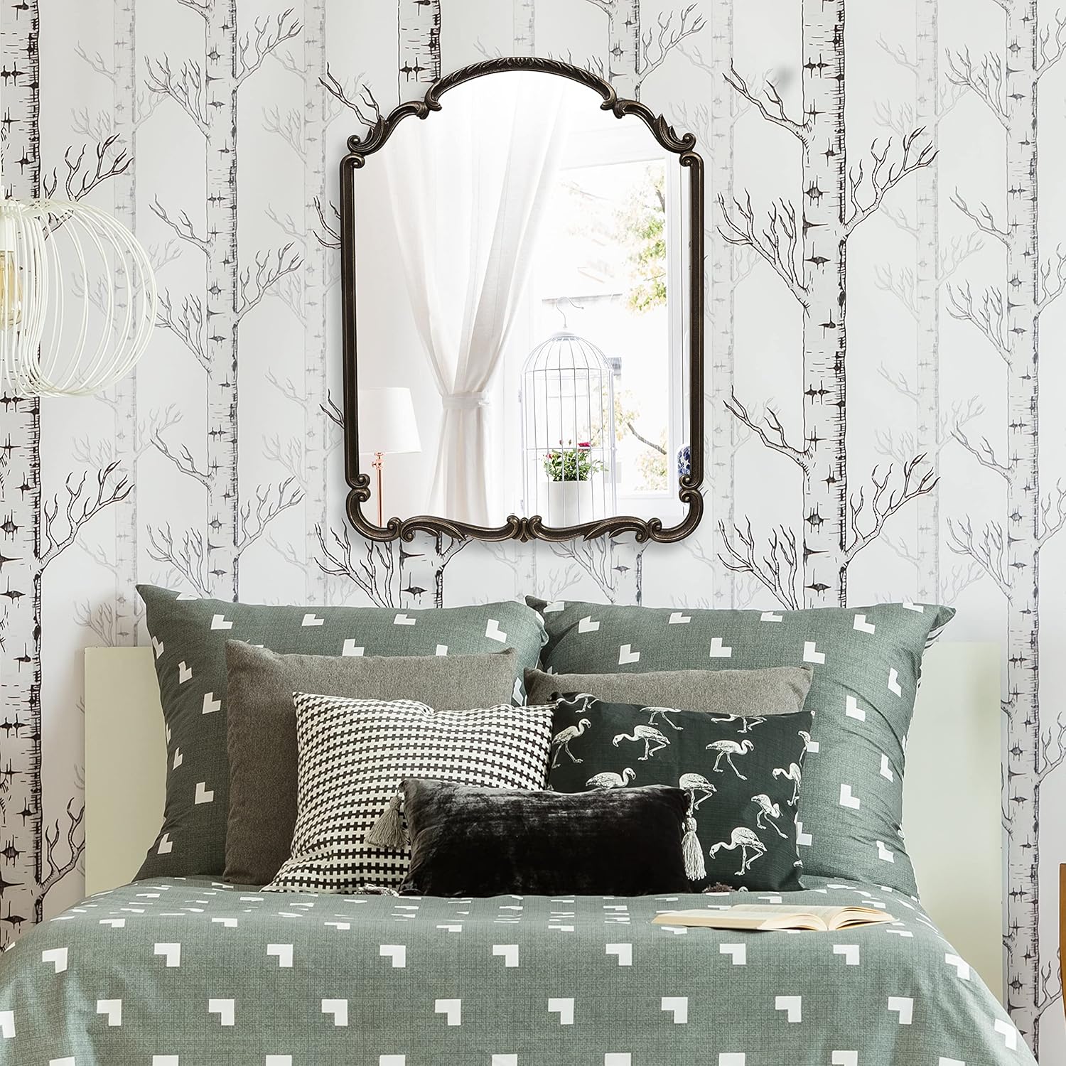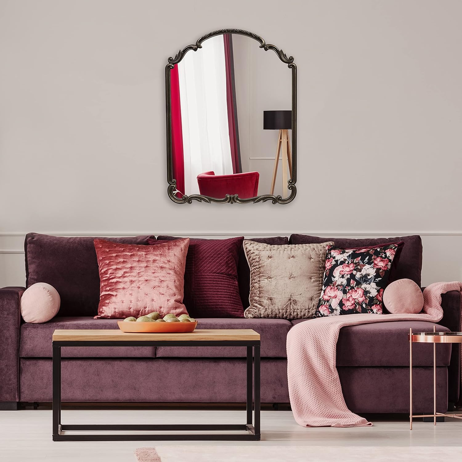 - QUALITY CONSTRUCTION: The Wylde Iris English Estate Framed Wall Mirror is crafted from carved engineered wood with glass front and features an antique black finish.
