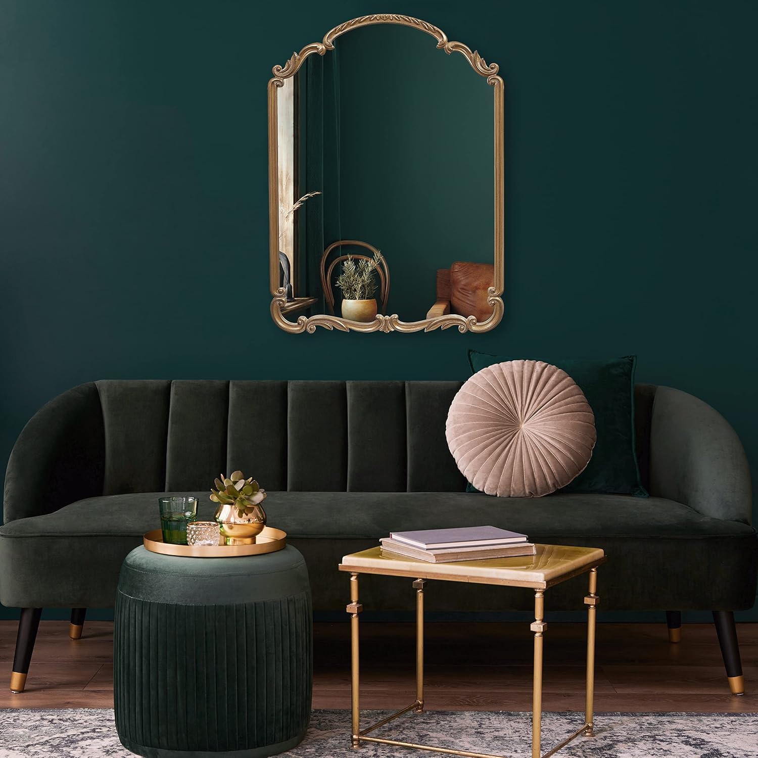 English Estate Carved Arch Wood Wall Mirror, Mirror for Entryway, Living Room, Bathroom, Antique Gold, 22x30