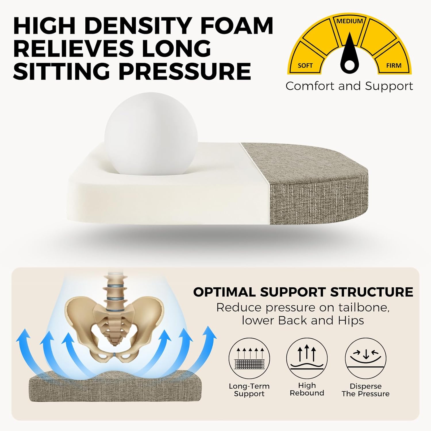 - Premium Materials: The cover of the chair pads is microfiber polyester that is soft, breathable and comfortable. And the filling is high-density foam which can offer additional support to your back and tailbone, easing achy muscles