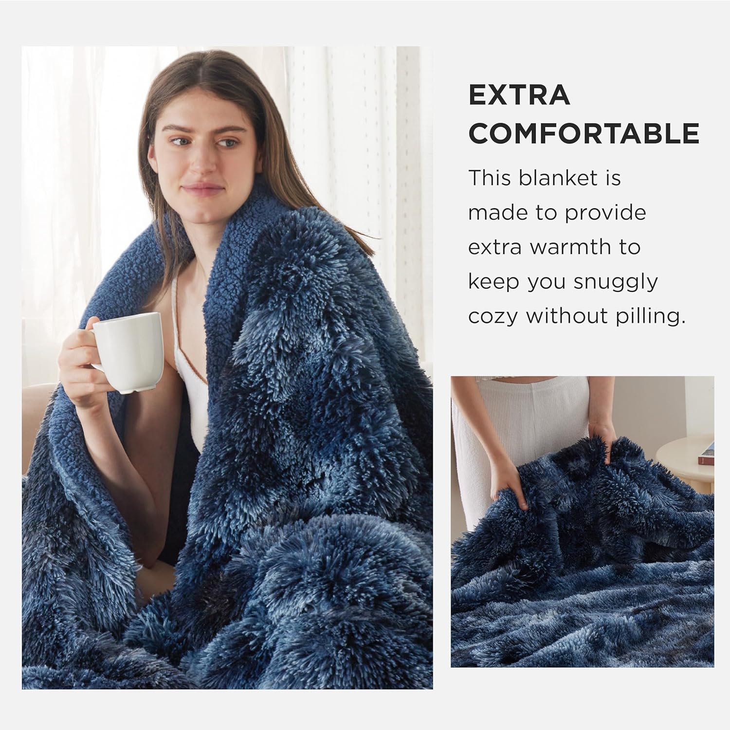 Bedsure GentleSoft Fuzzy Sherpa Faux Fur Twin Blanket Tie Dye Navy Cozy Gifts for Women Men, Soft Fleece Plush Warm Minky Thick Blanket Twin Size for Bed, Blue Room Decor Dorm Essentials Gifts, 60x80
