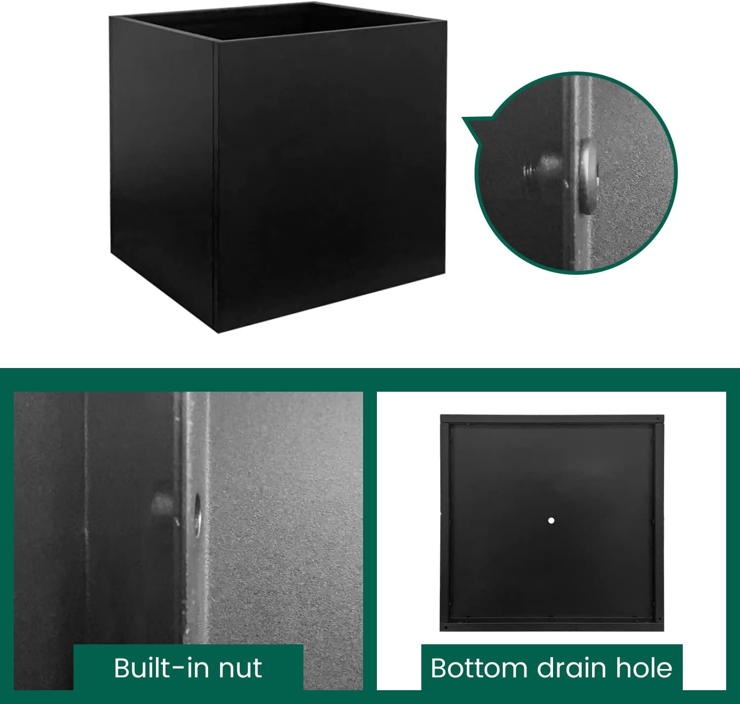 - Special Feature : Black Metal Planter, Black Square Planter, Galvanized Steel Planter Box, outdoor pots for plants, tall black planter Black Metal Planter, Black Square Planter, Galvanized Steel Planter Box, outdoor pots for plants, tall black planter