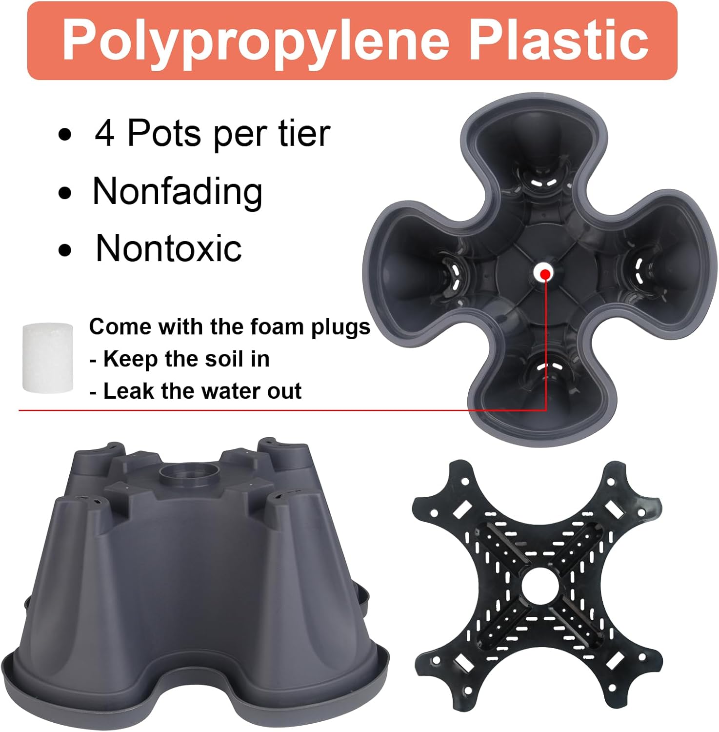 DUNCHATY Stackable Planter, Dark Gray, 5-Tier Garden Tower with Wheels, Self-Watering, Polypropylene Plastic, Indoor/Outdoor Use
