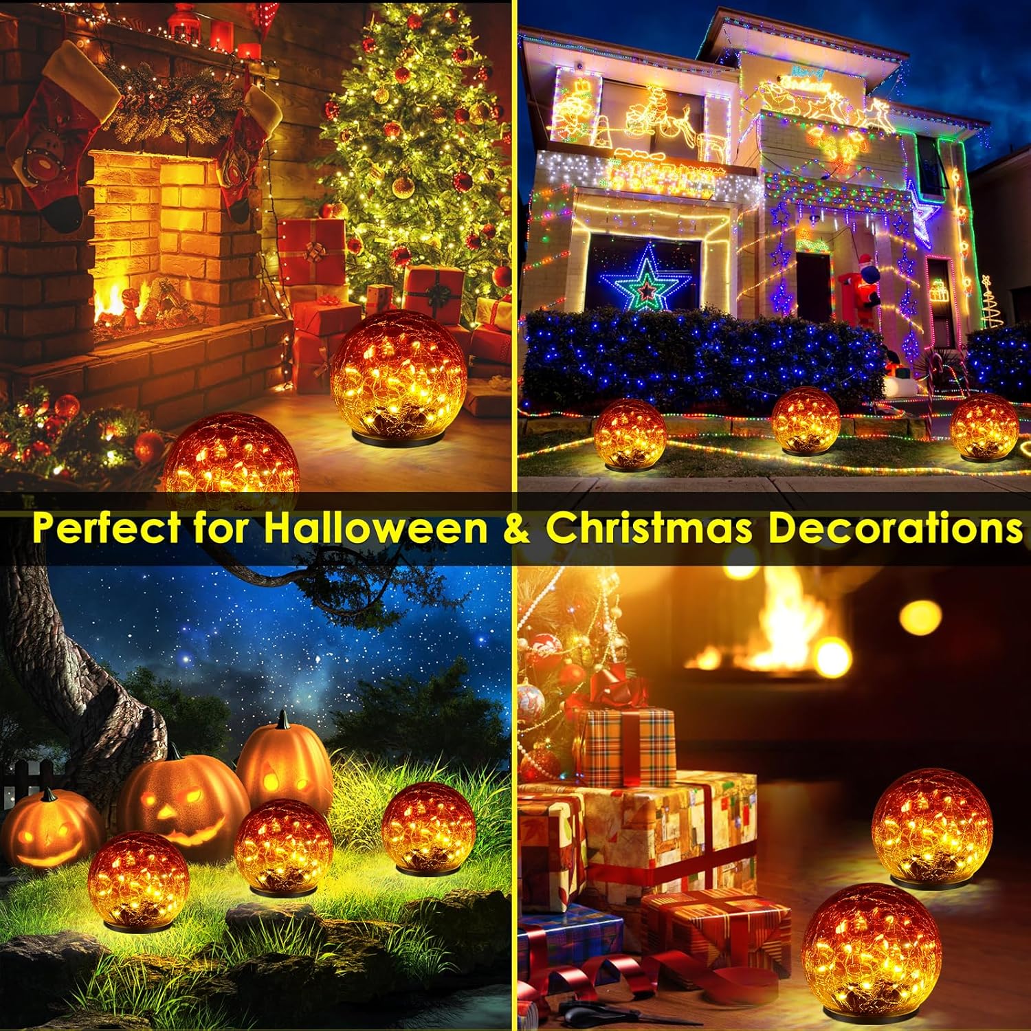 - IP65 Waterproof and Durably: Solar lawn lights decorative are fully enclosed by ABS and cracked glass. Durably construction and weather resistant feature of the solar ball lights outdoor. Our garden lights solar powered are made of IP65 waterproof upgrade and there will be no condensation, can be used in bad weather conditions such as rain, snow, ice, wind and so on