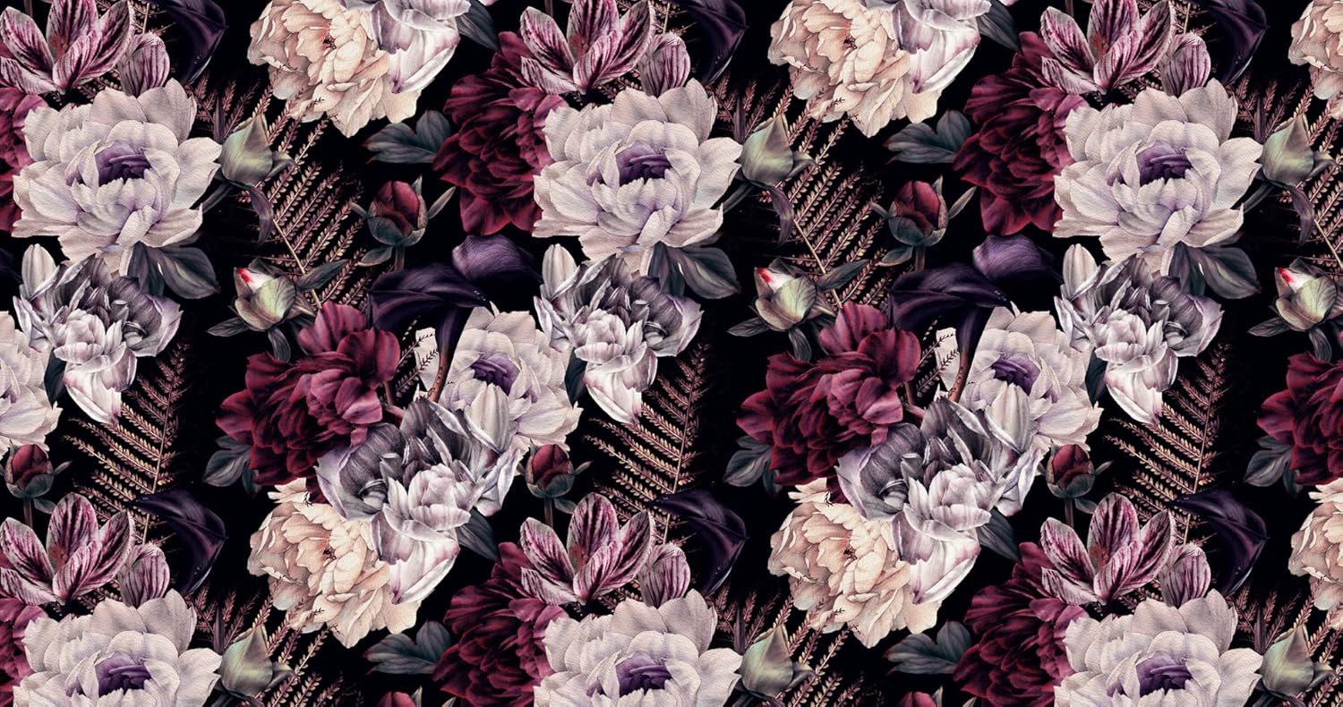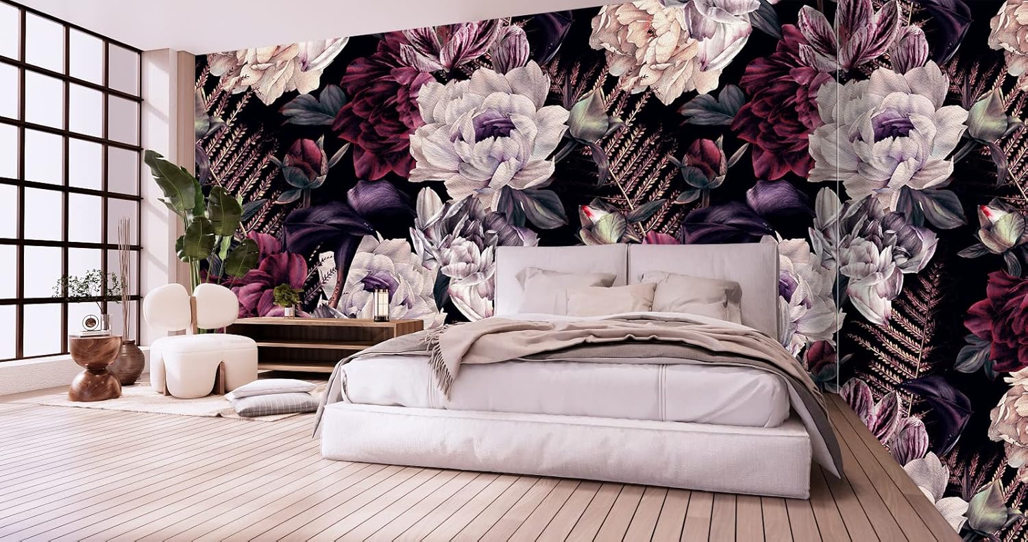 Floral Wallpaper Watercolor Dark Peony Flowers Mural Wallpaper for Bedroom Living Room (Not Peel n' Stick)
