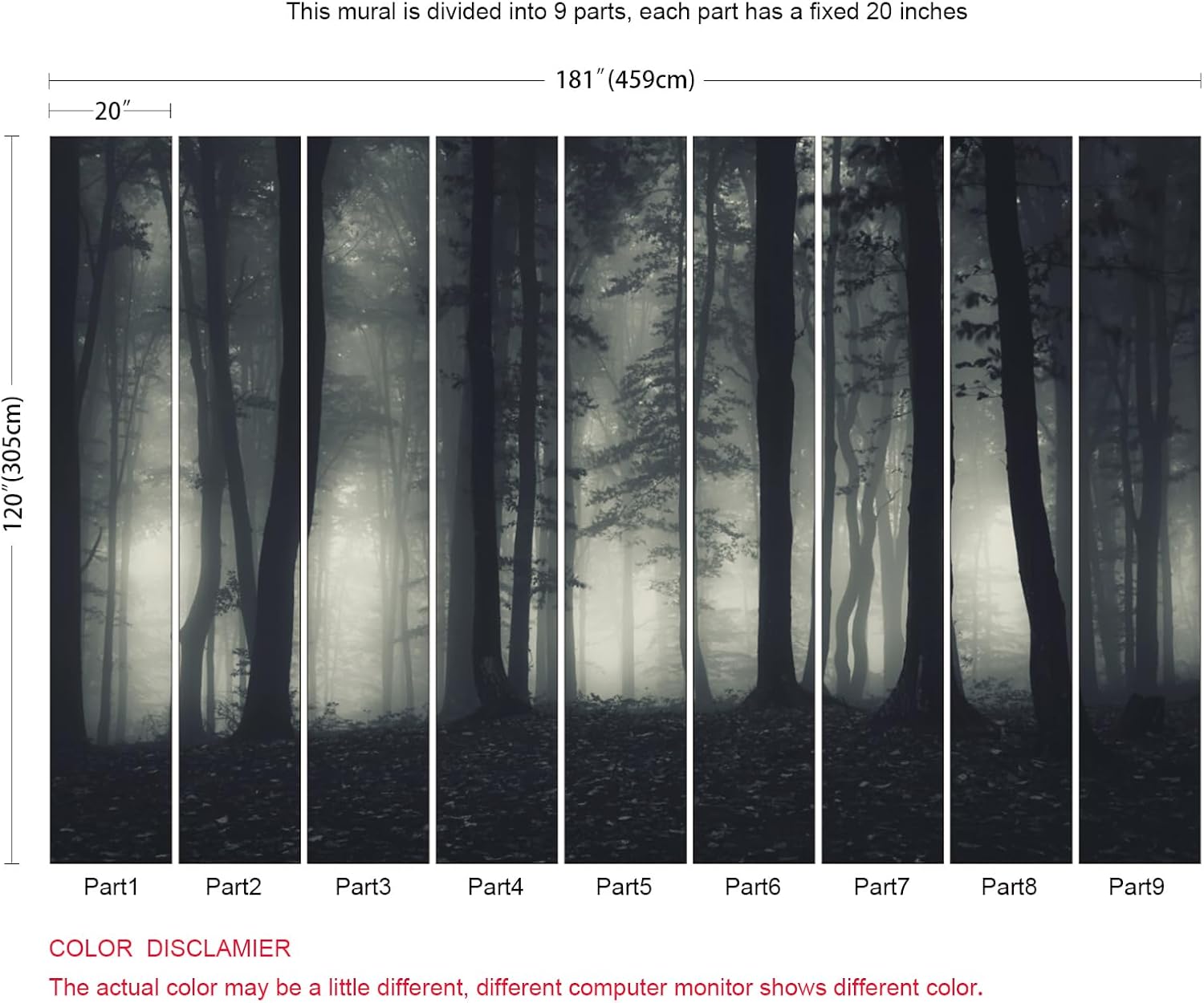 - Dimension:Approx. 181"x120" (Width x Height). This mural wallpaper is cut into 9 strips for easy installation.