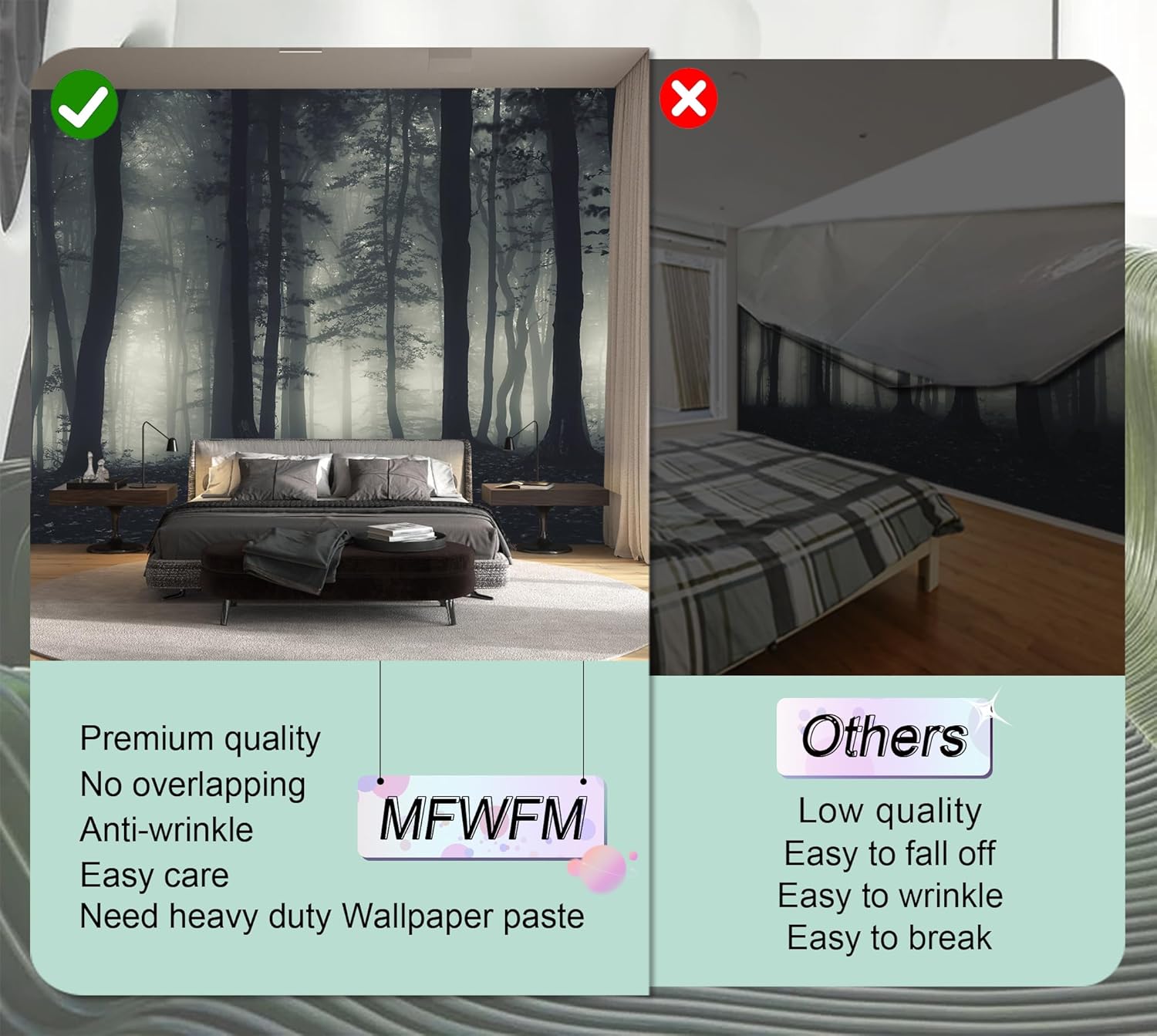 Foggy Forest Wallpaper Misty Jungle Rainforest Trees Nature Landscape Wall Mural(Not Peel n' Stick)