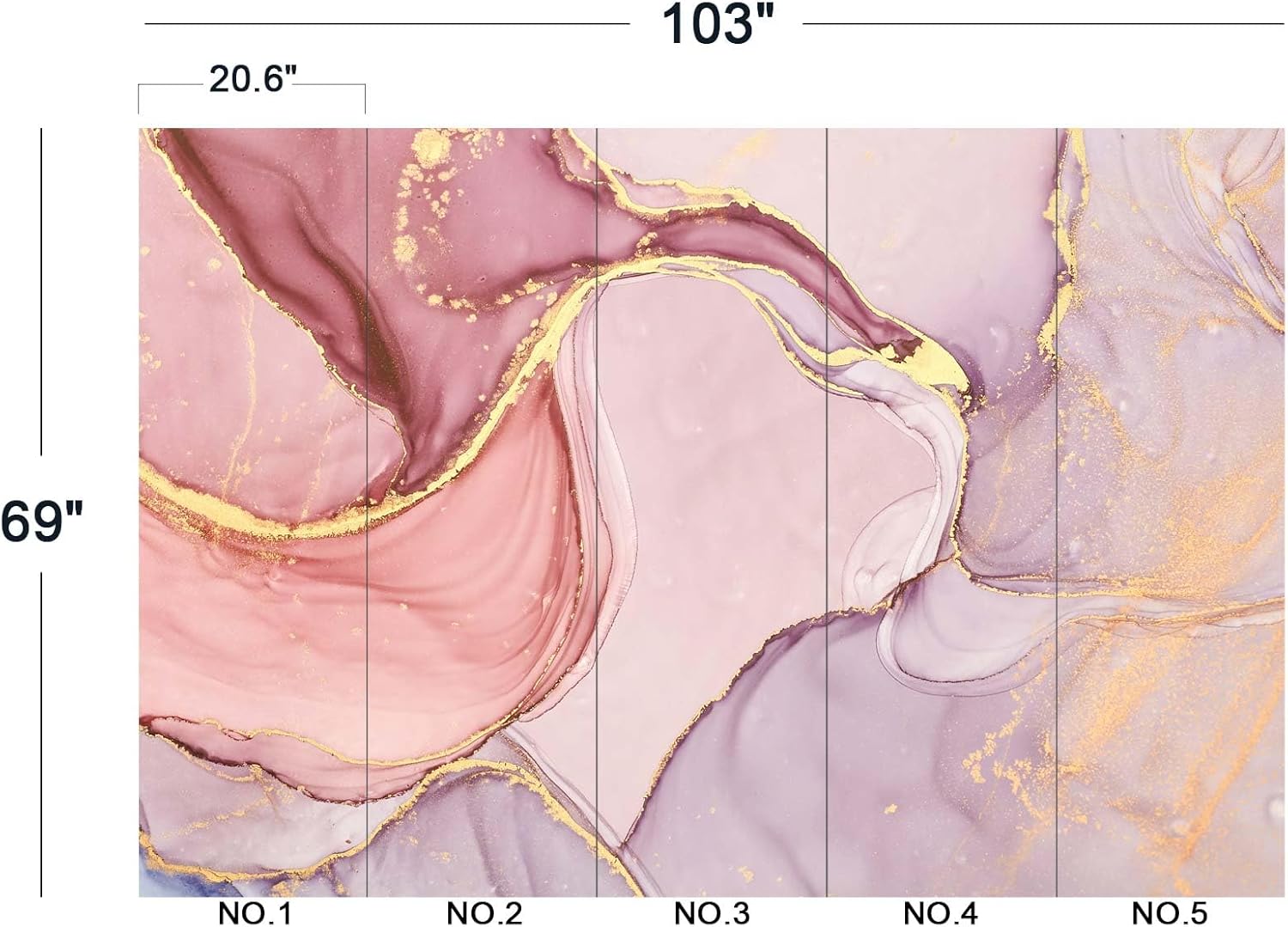 - The size of the wallpaper is 103" wide x 69" high and divided into 5 panels.