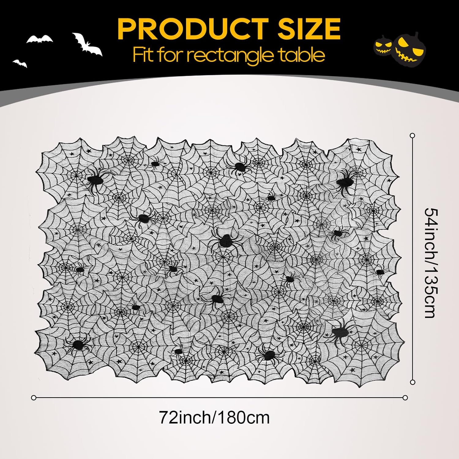 eZAKKA Halloween Table Cloth, 54" x 72" Spider Webs Tablecloths Black Tablecloth Lace Fabric Table Cloths Spooky Cover