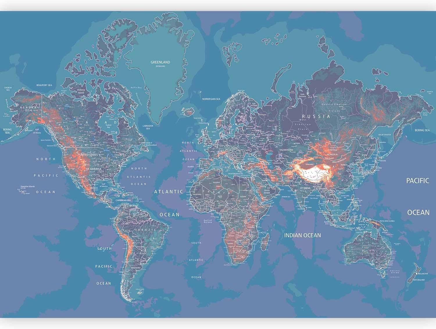 artgeist Premium Wall Mural World Map 118x83 in - XXL Non-Woven Wallpaper Fleece Wall Decor Photo Print Picture Image Design Home Map of The World k-A-0061-a-d