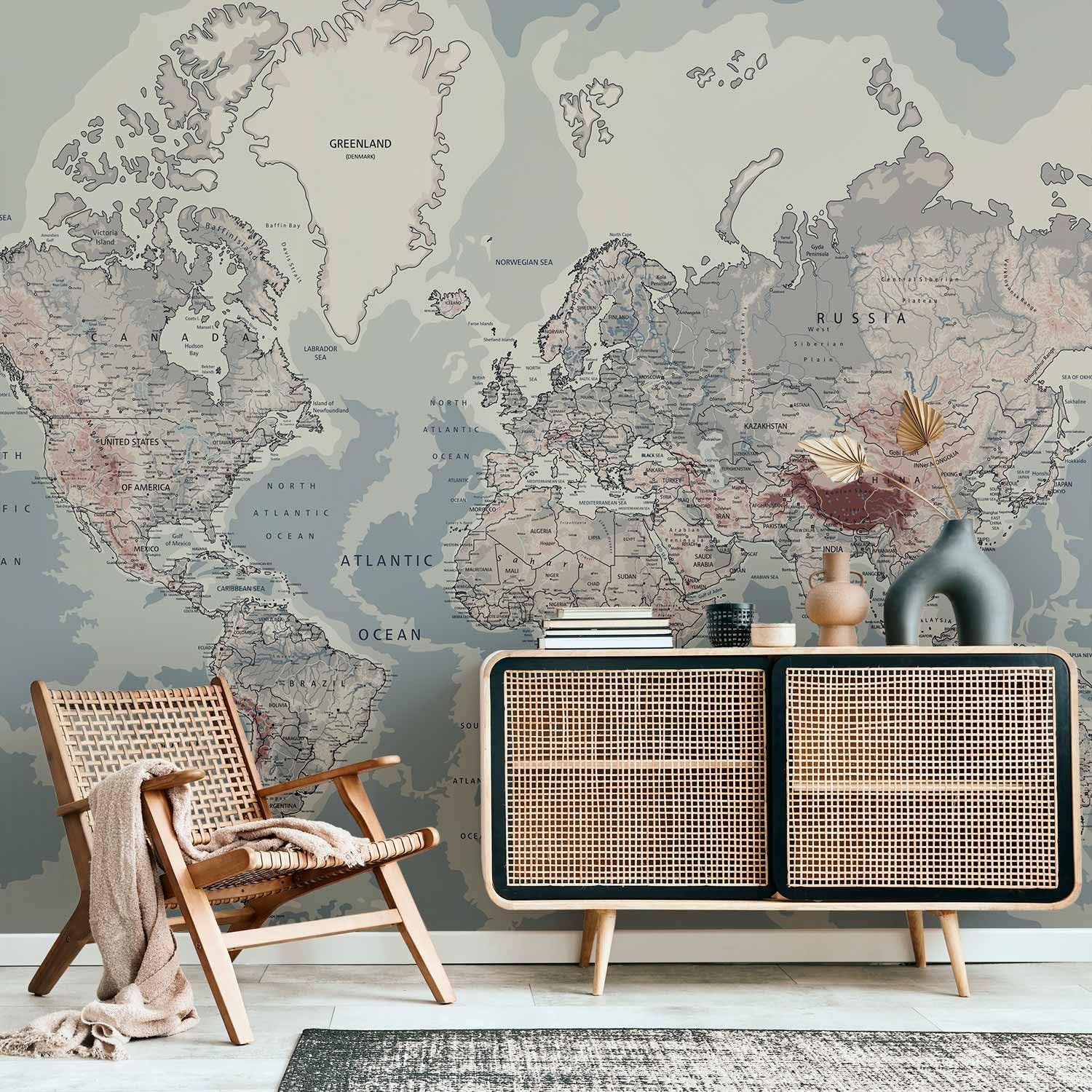 artgeist Premium Wall Mural World Map 118x83 in - XXL Non-Woven Wallpaper Fleece Wall Decor Photo Print Picture Image Design Home Map of The World k-A-0061-a-c