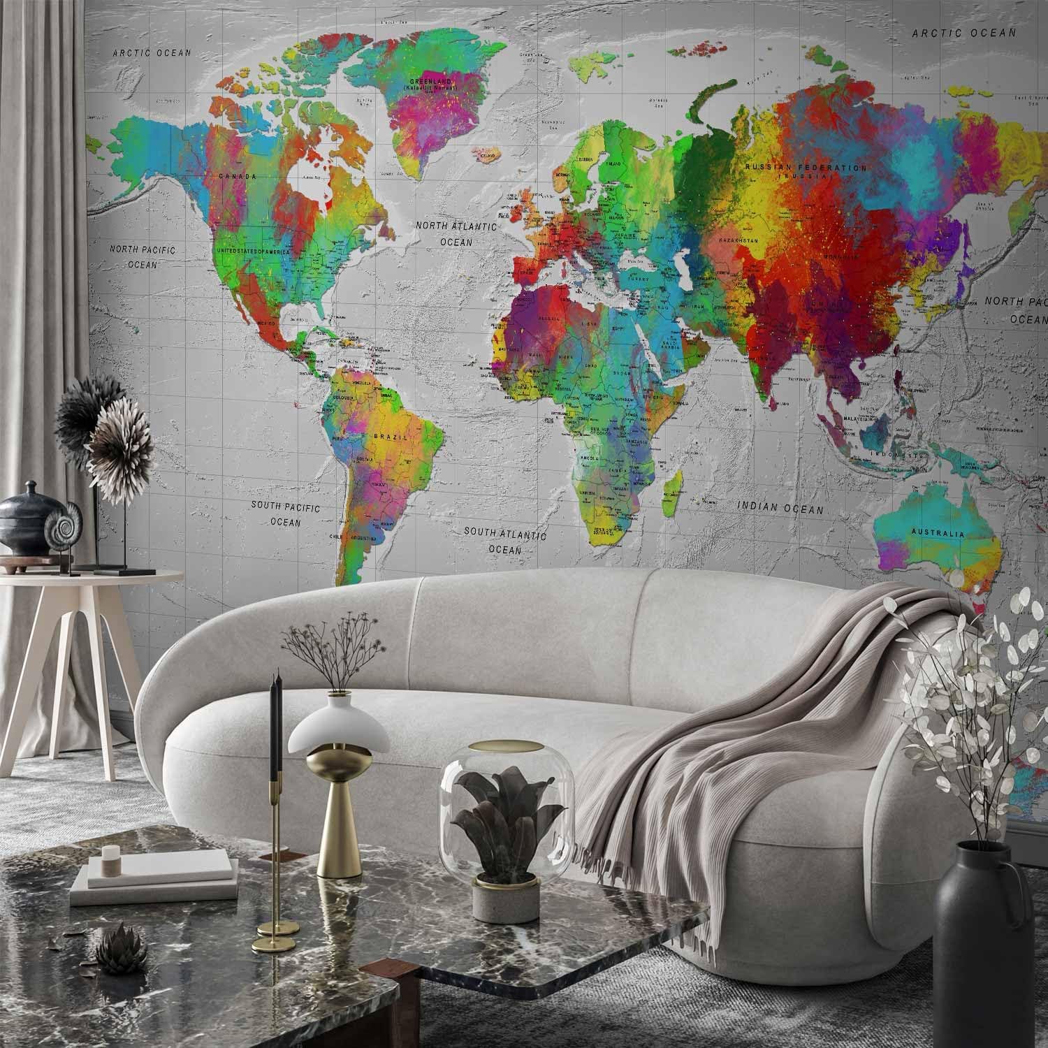 artgeist Premium Wall Mural World Map 138x101 in - XXL Non-Woven Wallpaper Fleece Wall Decor Photo Print Picture Image Design Home Map of The World k-A-0128-a-a