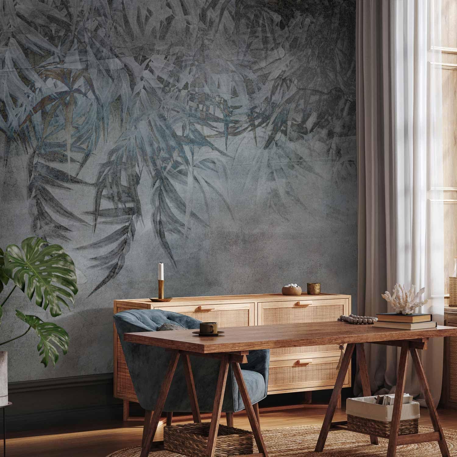 artgeist Premium Wall Mural Leaves 157x110 in - XXL Non-Woven Wallpaper Fleece Wall Decor Photo Print Picture Image Design Palm Leaves Concrete Nature Grey b-C-10103-a-a