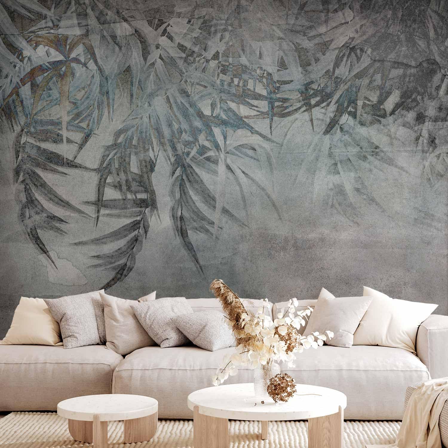 artgeist Premium Wall Mural Leaves 79x55 in - XXL Non-Woven Wallpaper Fleece Wall Decor Photo Print Picture Image Design Palm Leaves Concrete Nature Grey b-C-10103-a-a