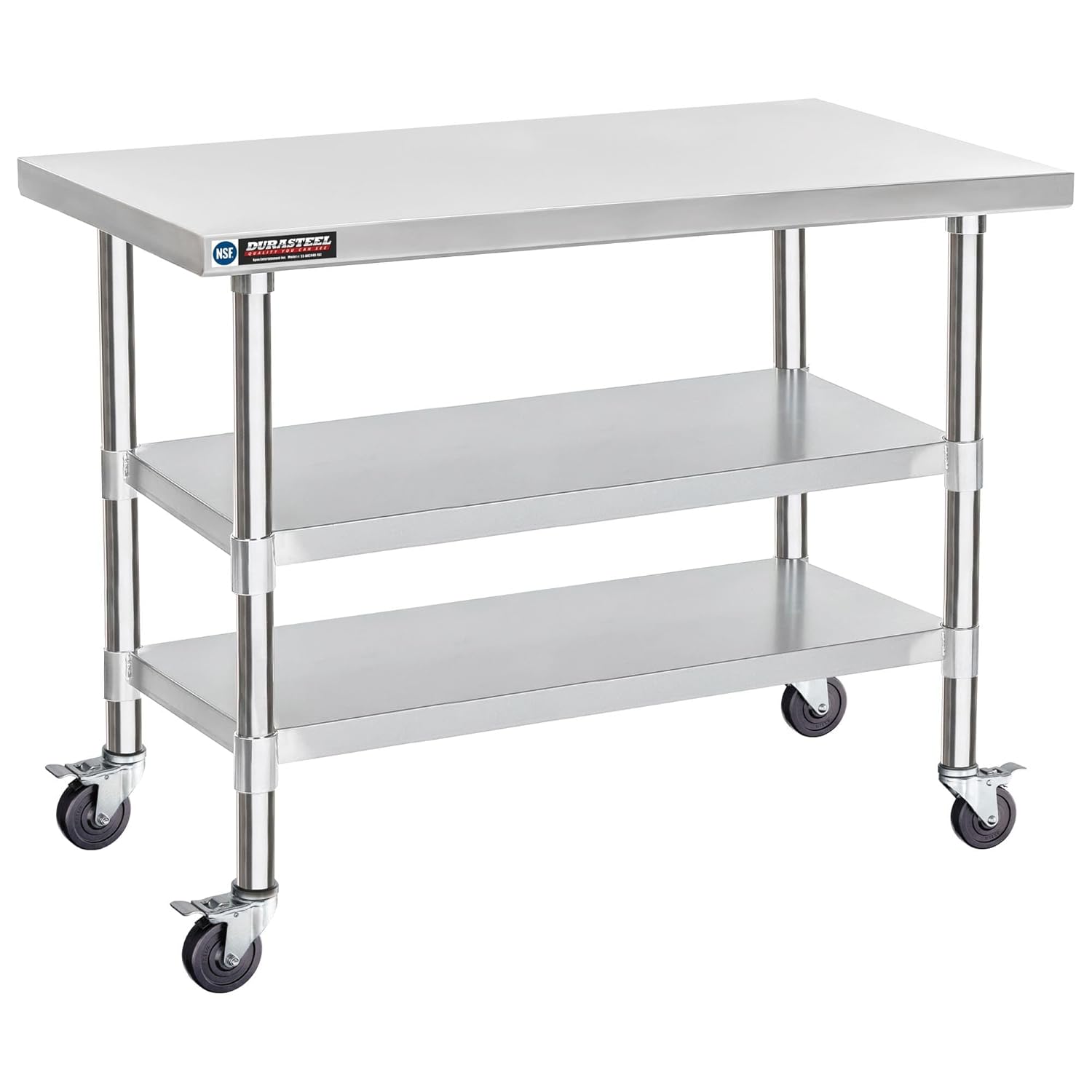 DuraSteel Stainless Steel Work Table 24" x 48" x 34" Height w/ 4 Caster Wheels - Food Prep Commercial Grade Worktable - NSF Certified - Good for Restaurant, Business, Warehouse, Home, Kitchen, Garage