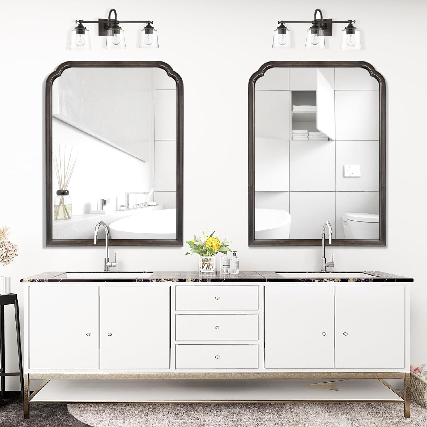 WallBeyond Wood Bathroom Mirrors for Wall Mounted, 30" x 40" Rustic Wood Frame Wall Mirrors Decorative for Living Room or Bedroom Vanity Mirror (Black)