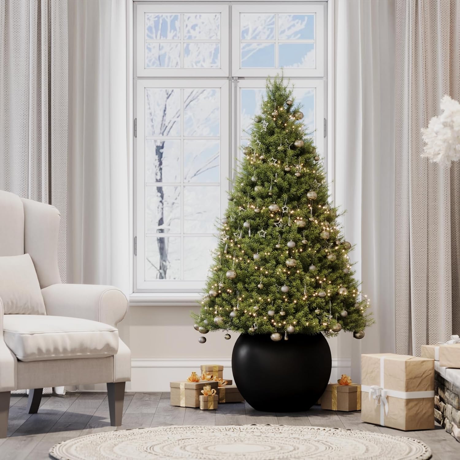 DTY Signature Mount Sherman Lightweight Durable Modern Fiberstone Sphere Planter for Indoor & Outdoor Drainage Hole & Rubber Plug Weather Resistant, 13.5" H x 17" Dia, 12" Opening- Medium, Black