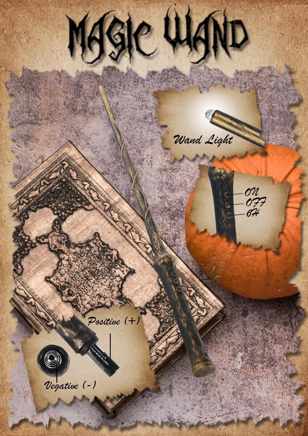 - MAGIC WAND REMOTE CONTROL - The included 13.9-inch magic wand remote control adds a touch of fun and fantasy to your decor. you can easily turn the on and off the candlelight, and it also has a 6-hour timer function. Magic wand remote requires only one AAA battery to power on (not included).
