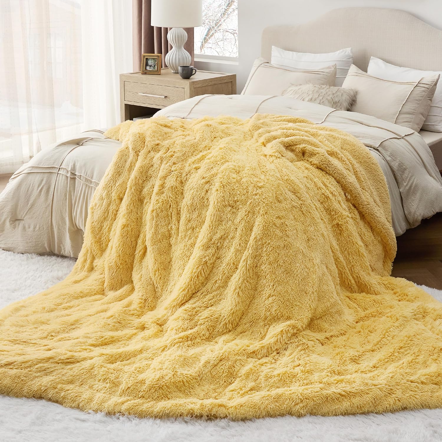 Bedsure GentleSoft Fluffy Yellow King Size Blanket for Bed, Thick Soft Sherpa Faux Fur Fleece Bedding Fuzzy Plush Winter Warm Heavy Big Large King Blanket, Cozy Yellow Gifts for Men Women, 108x90