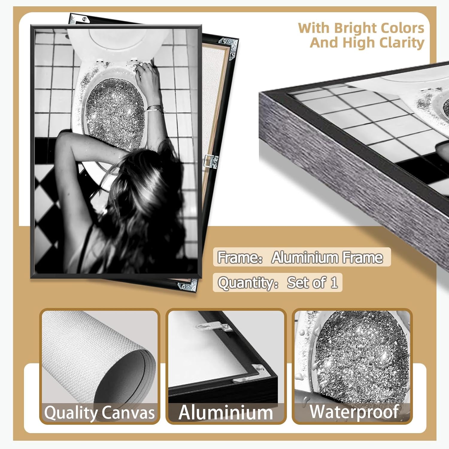 Funny Bathroom Wall Art Black and White posters Bar Disco Party prints painting Girls Bathroom Canvas wall art Funky aesthetics Teen Girl Bedroom wall decor for 16x24in Framed