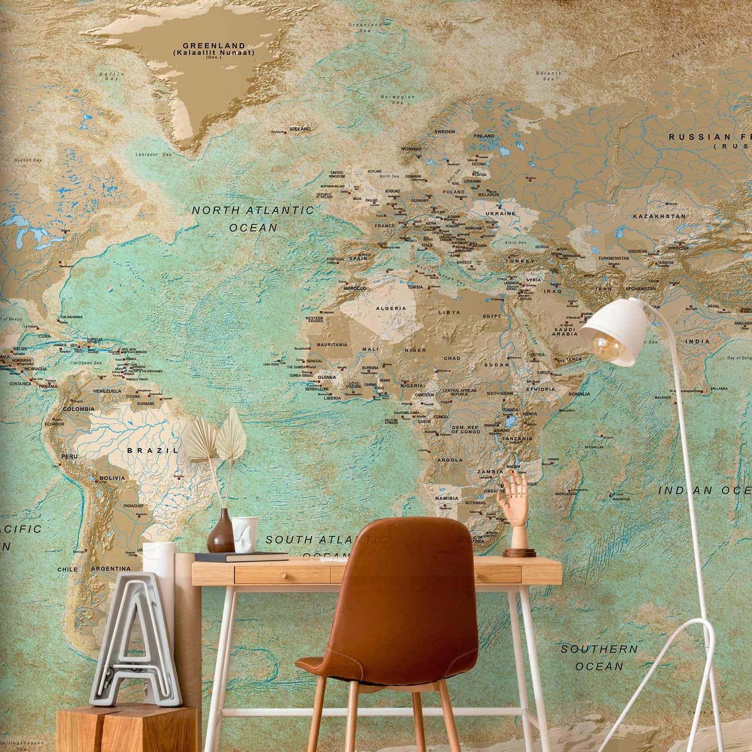 artgeist Premium Wall Mural World Map 197x110 in - Non-Woven Wallpaper Fleece Wall Decor Photo Print Picture Image Design k-A-0105-x-a