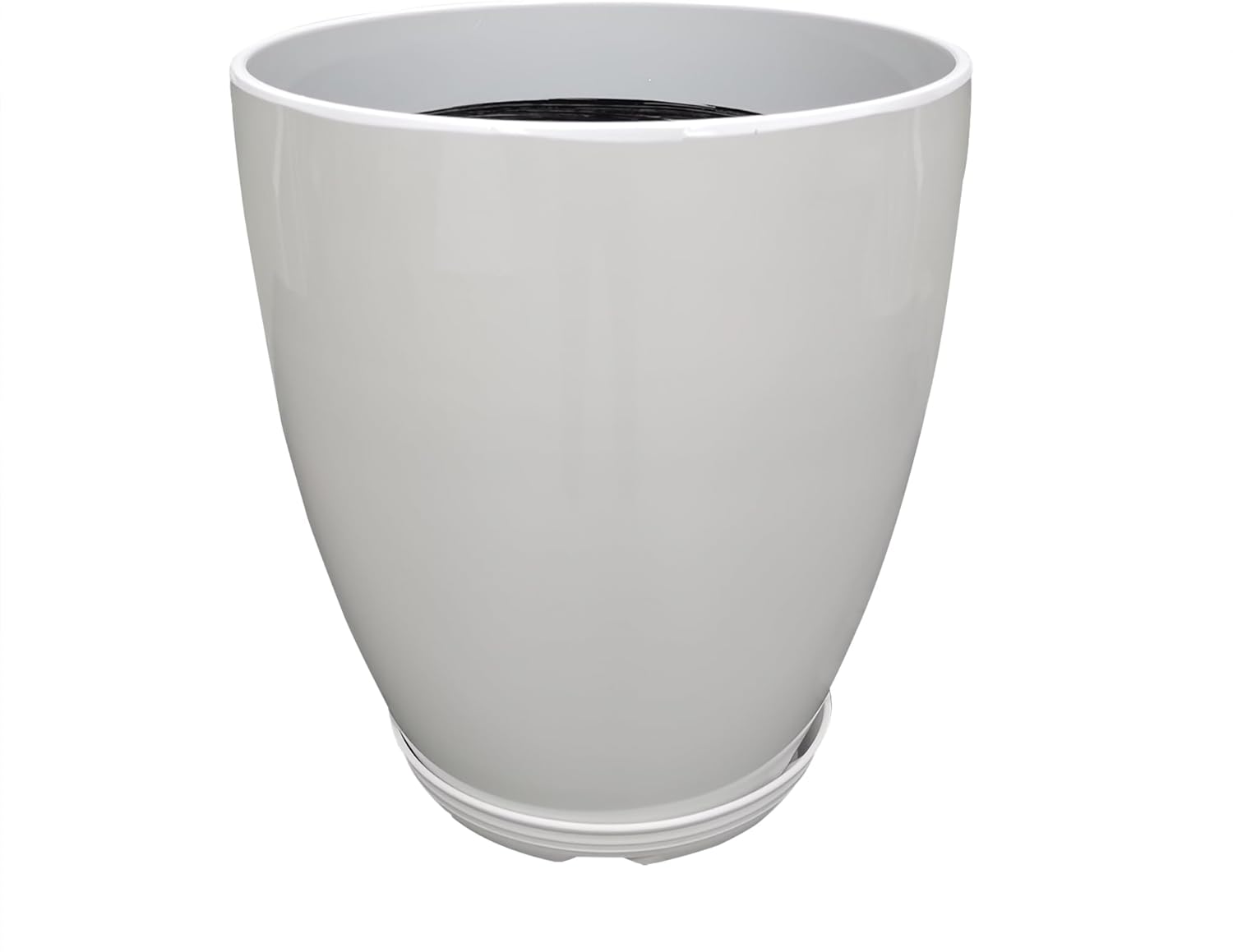 FixtureDisplays® 11.8" Diameter 11.8" Tall White Plant Pots, Plastic Flower Pots with Drainage Holes and Saucers for Indoor and Outdoor 15748-NF