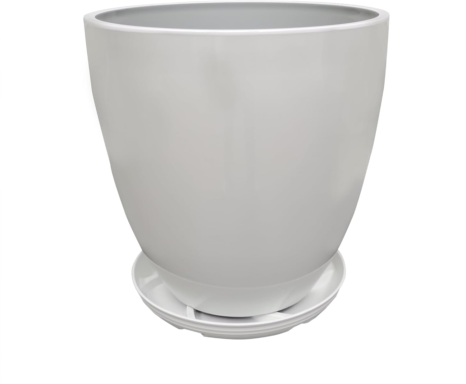 FixtureDisplays® 9.8" Diameter 11" Tall White Plant Pots, Plastic Flower Pots with Drainage Holes and Saucers for Indoor and Outdoor 15747-NF