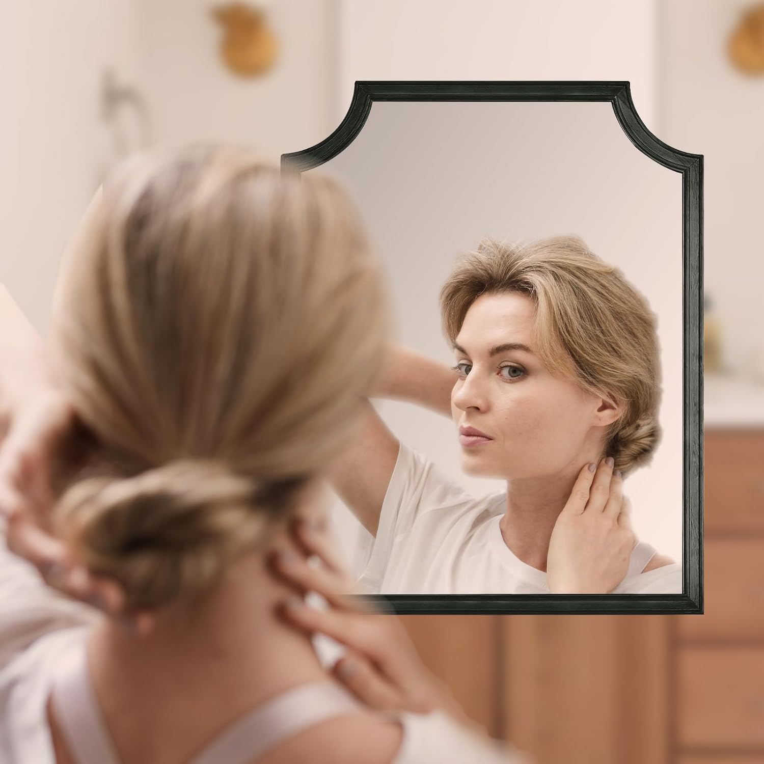 WallBeyond Scalloped Wood Mirror for Wall Decor 16x20 Inch Black Small Bathroom Vanity Rectangle Mirror for Hallway Bedroom Living Room(Black)