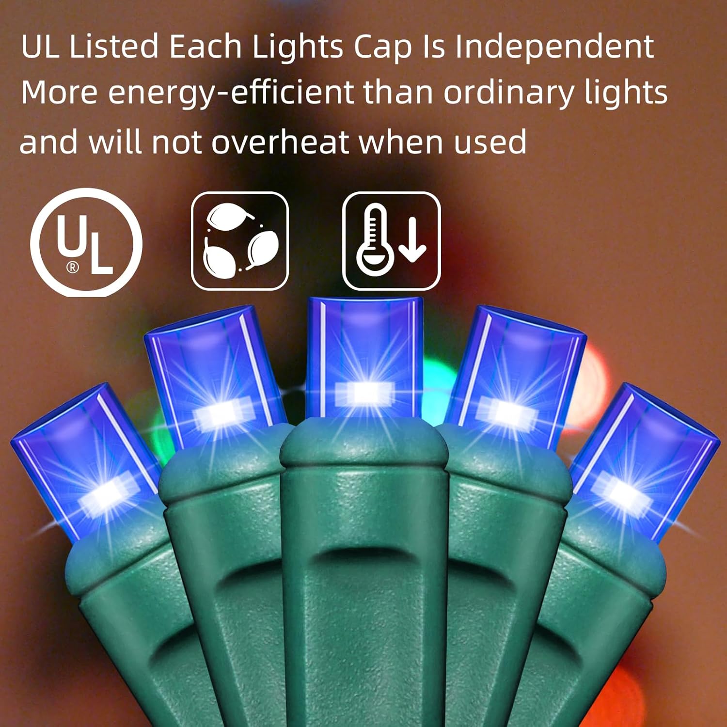 - One-Piece 5MM Commercial Decoration LIGHTS : 600ft 1200 LED Lights (50 Lights 25ft X24Groups), 6-inch spacing. Green wires have a wide range of uses and are perfectly integrated with green plants or shrubs.no extra adapter is needed,bulbs are cool to touch,with the rectifier,keep the light steady (not twinkle).