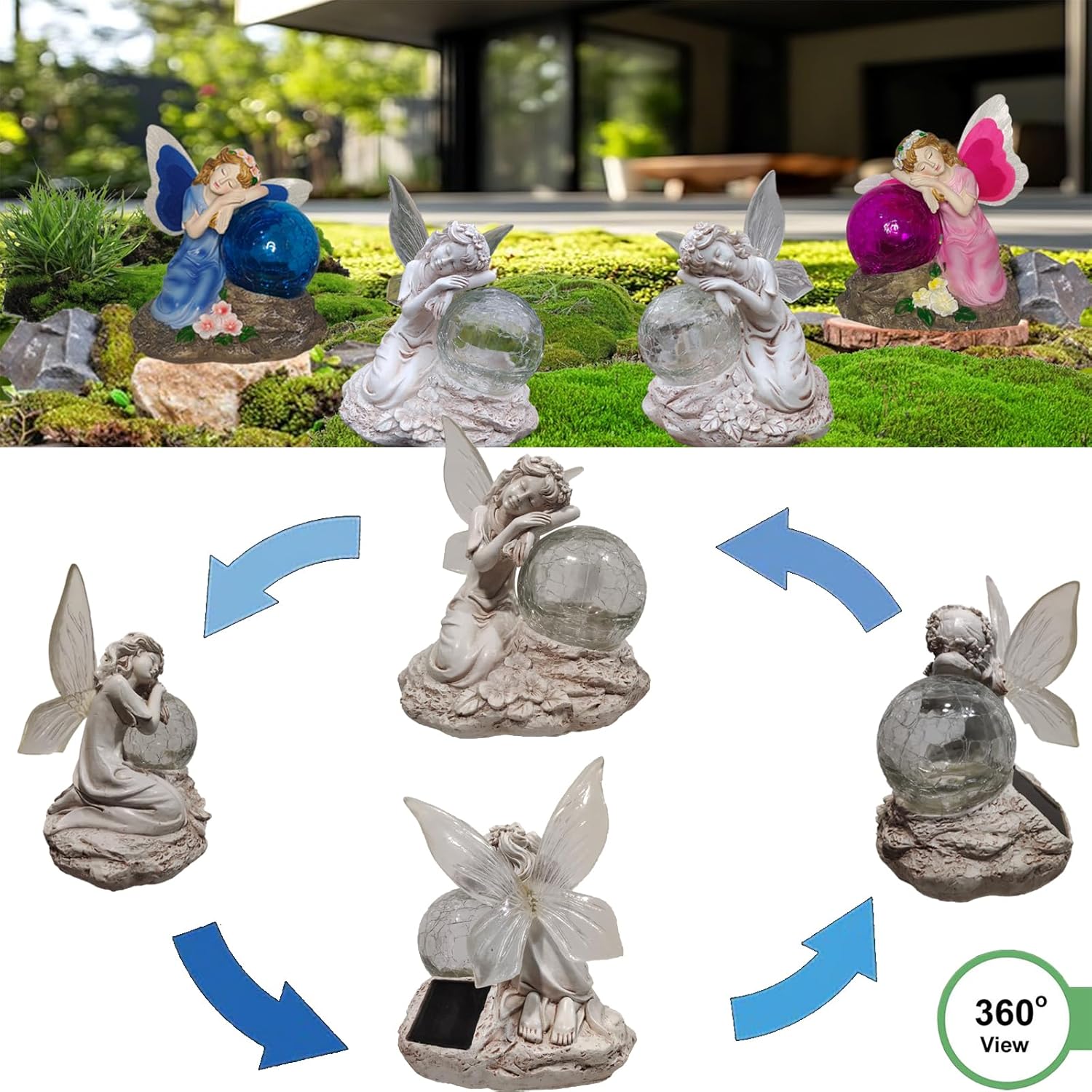 - Enhance your outdoor and garden with enchanting solar fairy decor. Wings and glass spheres glow with colorful colors at night! perfect for garden ornaments for outside garden and fairy garden accessories outdoor.