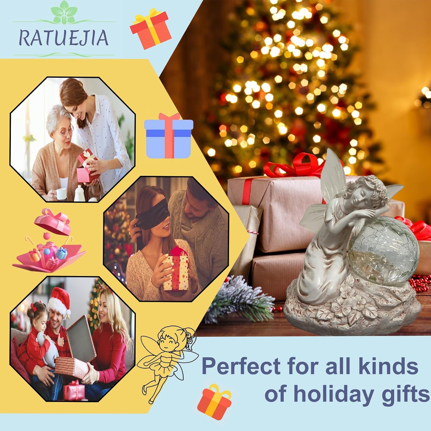 Fairy Garden Statue ,Solar Garden Decor ,Fairy Statue Outdoor with Glass Ball ,Waterproof Outdoor Decor,Suitable for Yard, Lawn ,Ideal for Holiday Giving (Left)