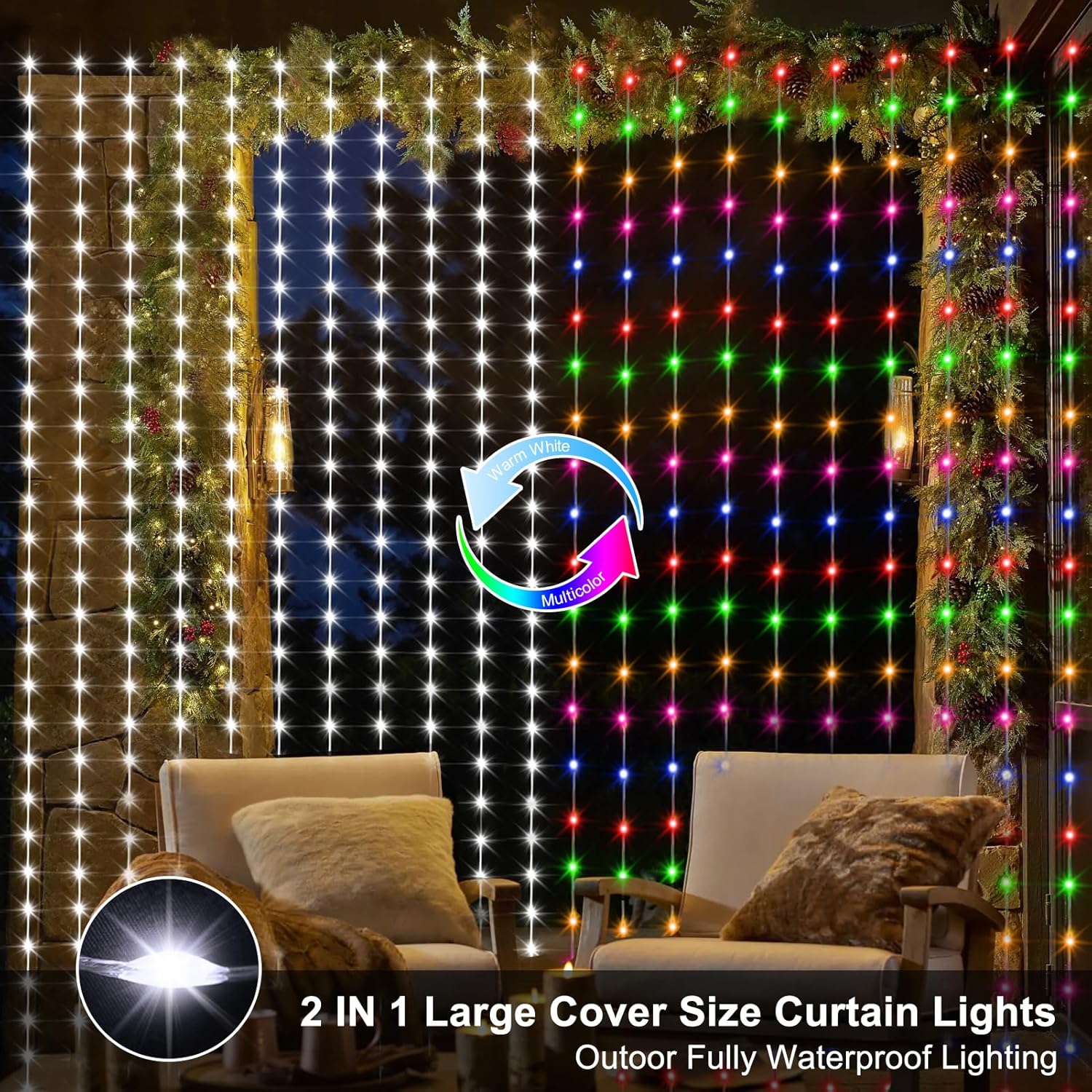 - 2 Color Changing Curtain Lights: 20ft x 10ft 600 LED curtain lights feature a dual-color design, can be switched to cool white & multicolor, provide a stunning and magical display. Perfect for windows, walls, or any area that needs a touch of sparkle