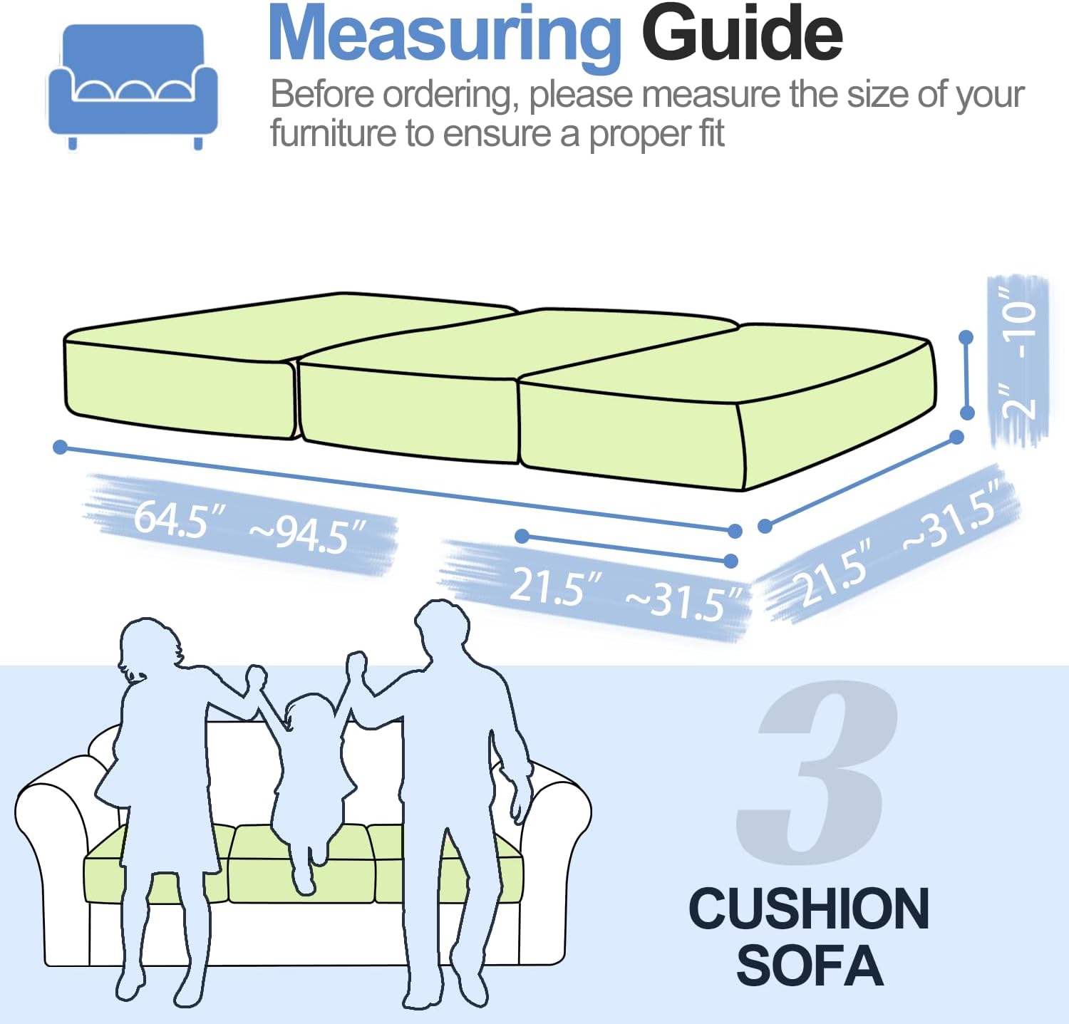 - 【Easy to install】The couch seat covers are easy to install and can be completed in just a few minutes. The cover comes with elastic bands that securely fix it to the sofa, keeping it in the right position. Before ordering, please measure the size of your furniture to ensure a proper fit. This cover is suitable for both T-cushion and box cushion styles and is highly recommended for use with both leather and fabric furniture.