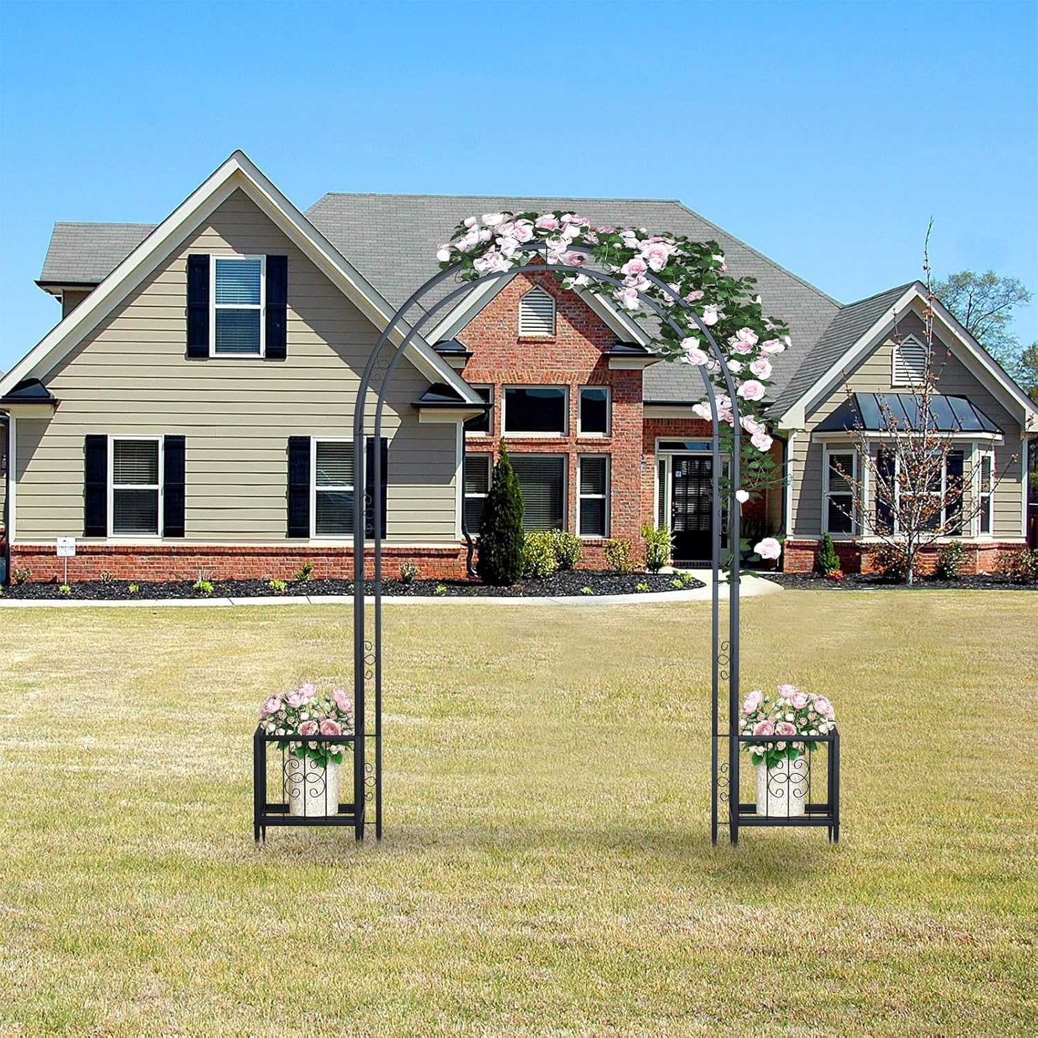 88in Steel Garden Arch Arbor Trellis with Planter Boxes for Climbing Plants Outdoor, Yard, Wide Sturdy Durable Garden Arch for Lawn,Outdoor Wedding Arch(Black)