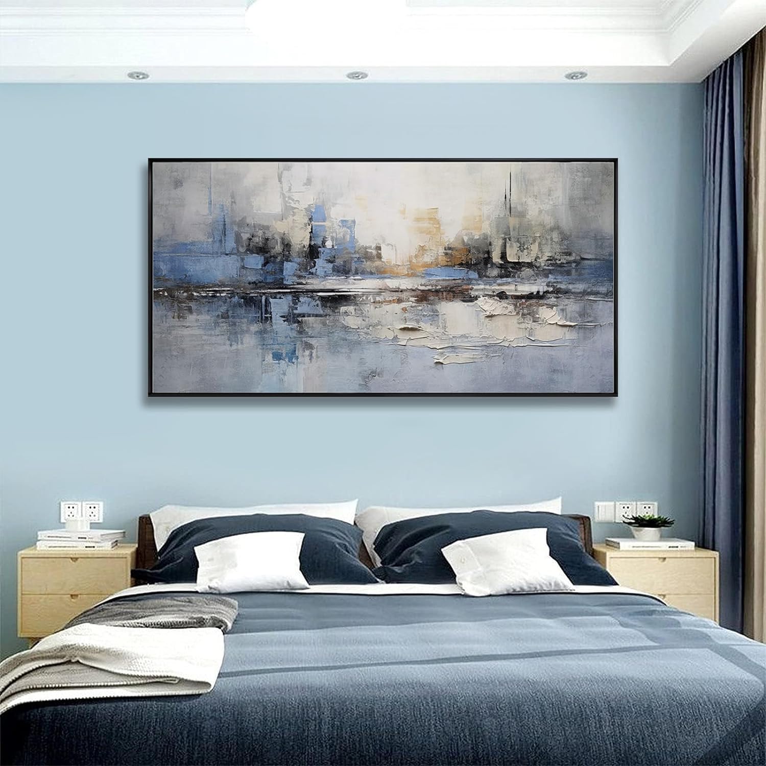 Abstract Wall Art Blue and White Reflection Large Size Framed Artwork Wall Decor Canvas Painting Stretched Canvas Wooden for Living Room Bedroom Office Home Decor Frame ready for hanging 30"x60"