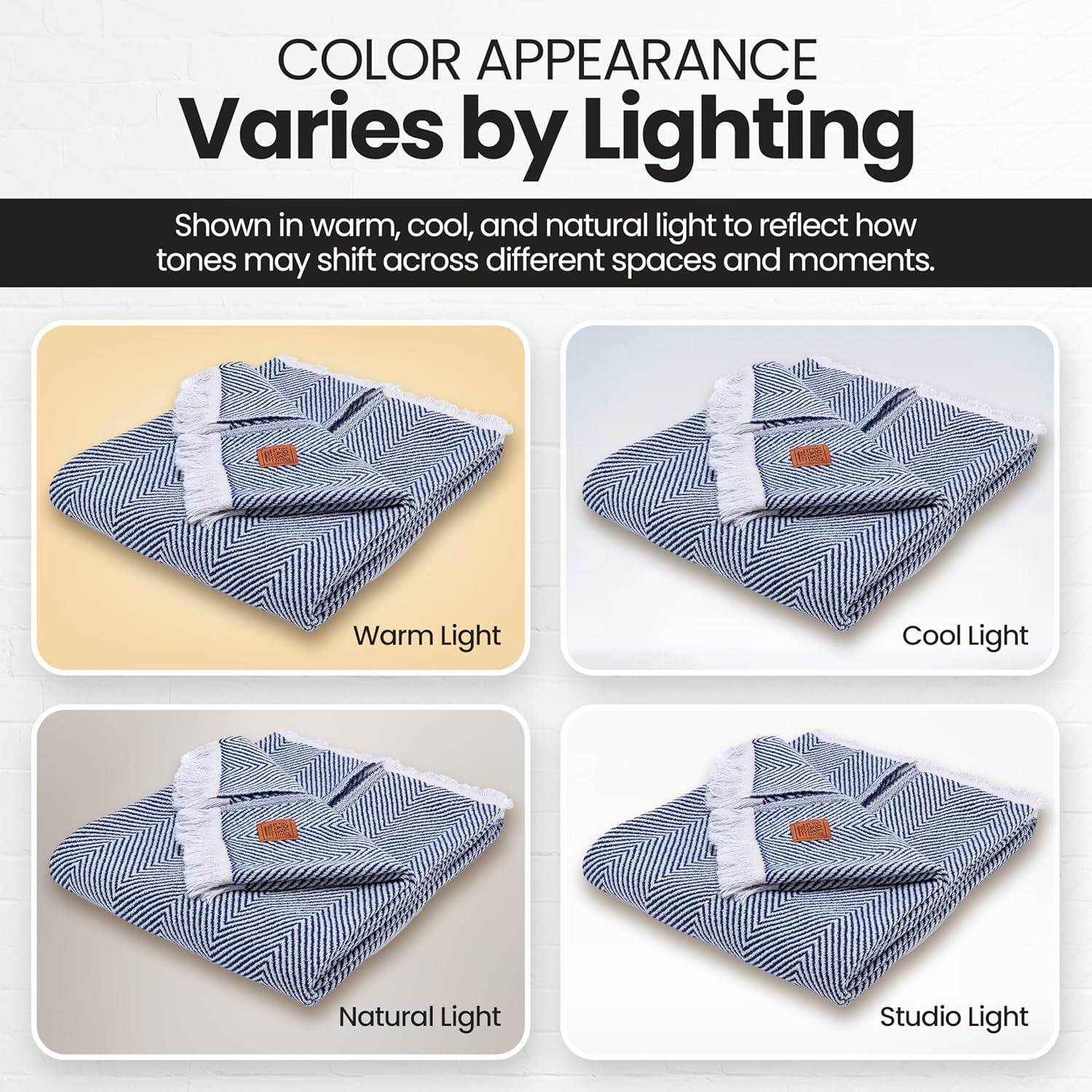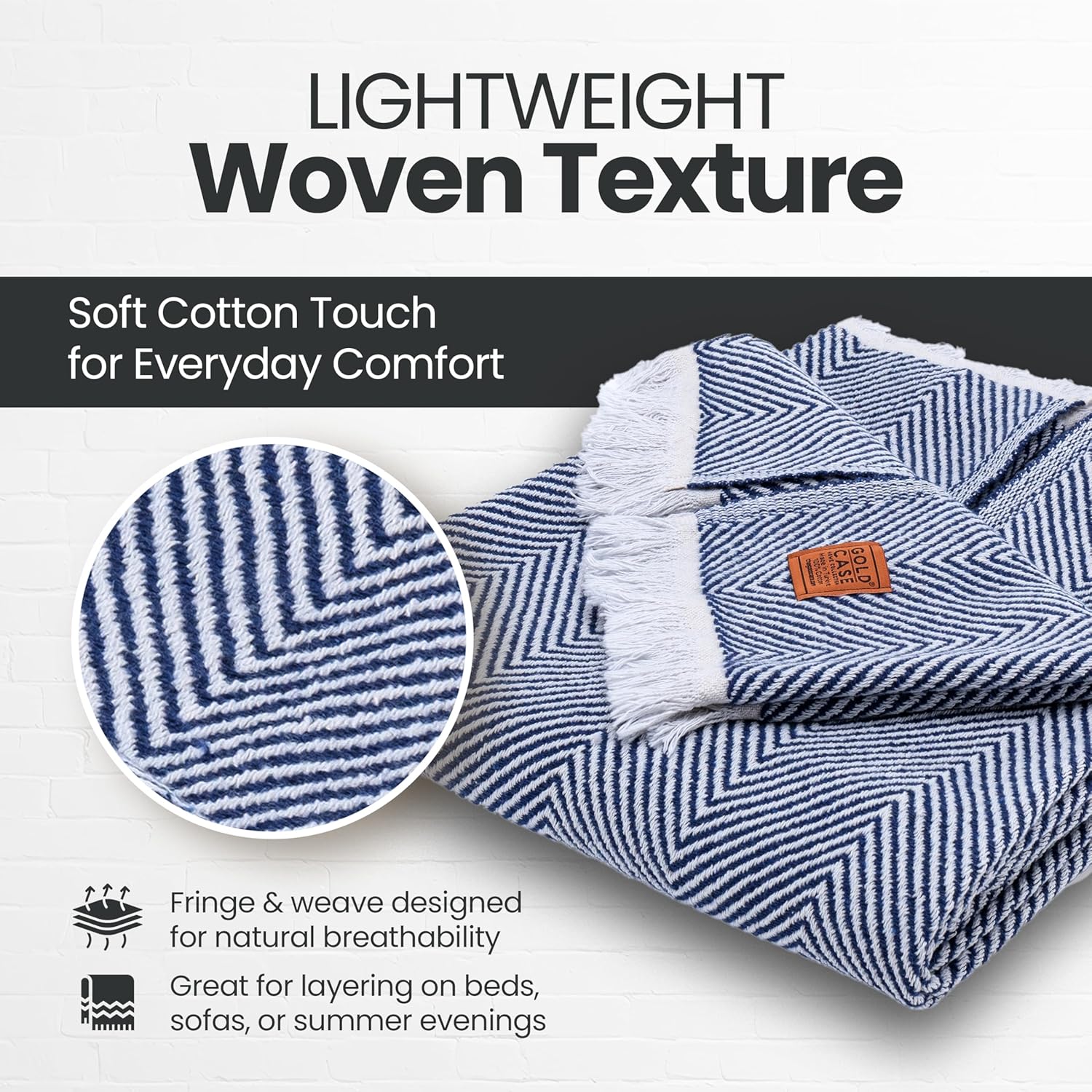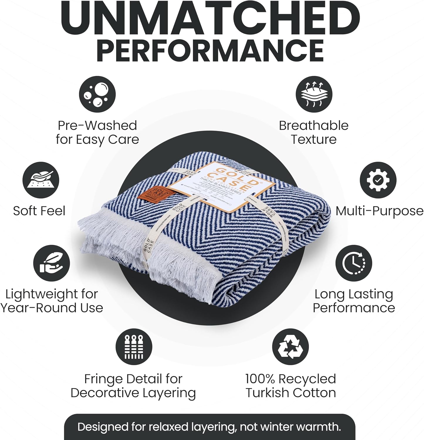 Gold Case Throw Blanket for Couch – 100% Recycled Turkish Cotton Blankets & Throws – Elegant Decorative Throw Blankets for Living Room Sofa – Woven Throws for Couch – Elegant Navy Blue – 50x60
