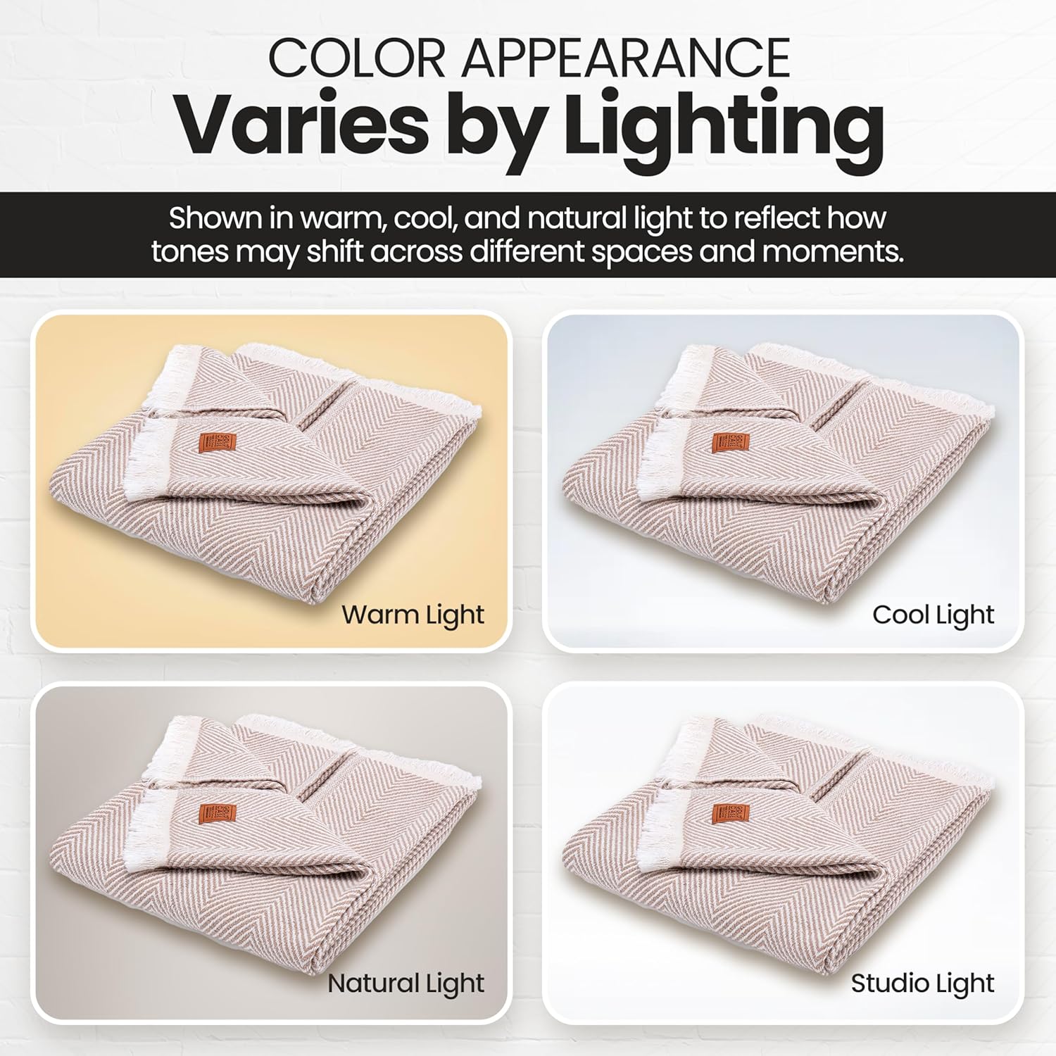 Gold Case Throw Blanket for Couch – 100% Recycled Turkish Cotton Blankets & Throws – Elegant Decorative Throw Blankets for Living Room Sofa – Woven Throws for Couch – Elegant Beige – 50x60