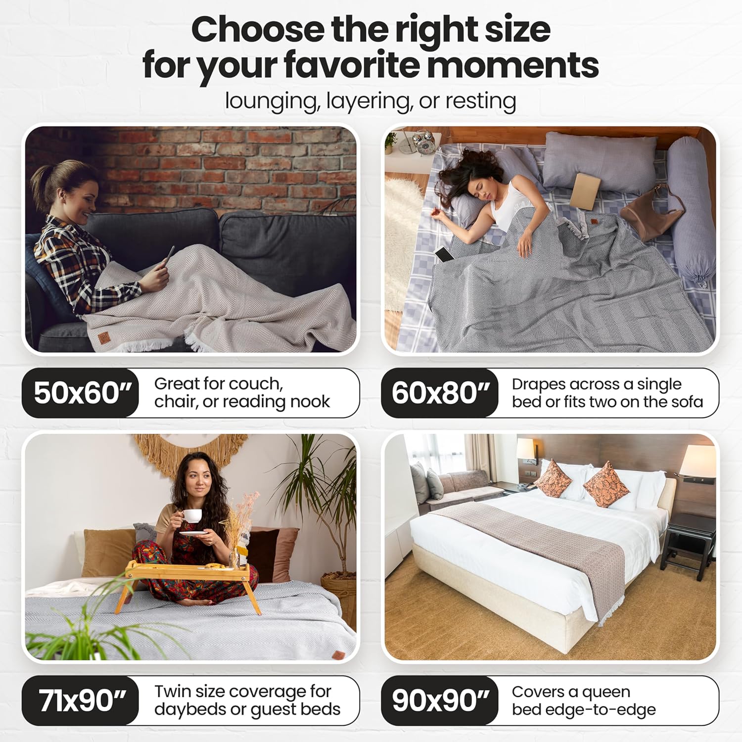 - LIGHTWEIGHT LAYERS FOR RELAXED MOMENTS: Woven from 100% recycled Turkish cotton, this breathable cotton blanket throw adds a soft, textured touch to your space; this bed throw blanket made for layering on your bed, or adding a laid-back look to your decor