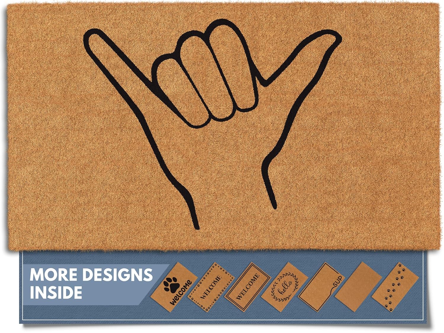 - Versatile - Our surf and skate inspired Shaka doormat outdoor entrances is not only perfect for beach houses, but also makes a great welcome mat for outdoor events or camping trips. Its durable construction is perfect for cleaning dirt and debris from shoes, and the all-weather coir fibers dry quickly. Use it to welcome guests to your home, cabin, or RV.