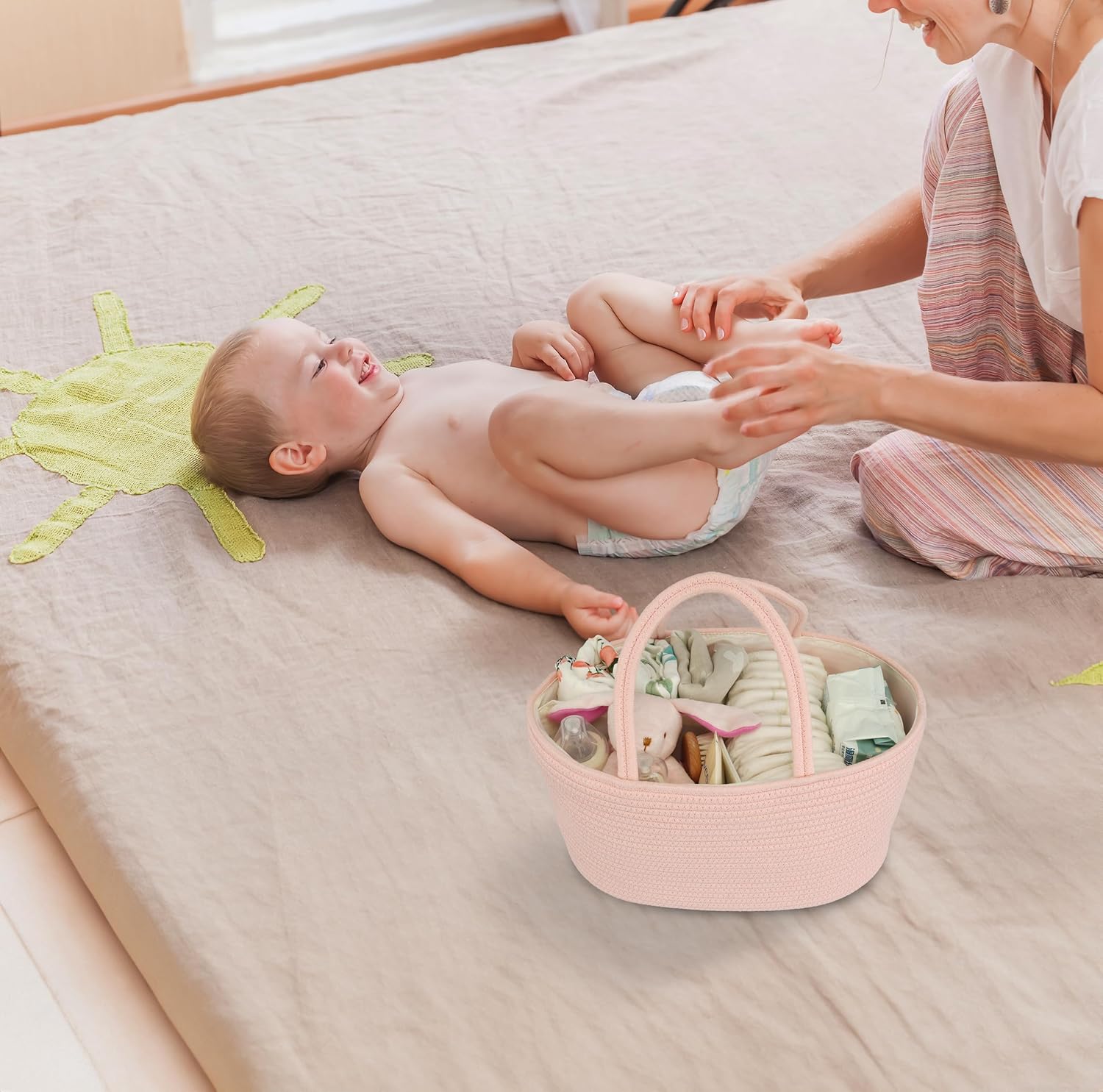 - Flexible and Portable Diaper basket with removable divider: Featuring handles for effortless transportation, our diaper change caddy includes removable dividers for personalized organization. Adjust the internal layout as needed to accommodate various baby items. Move seamlessly from room to room or take diaper organizer caddy on the go for convenient access to baby essentials.