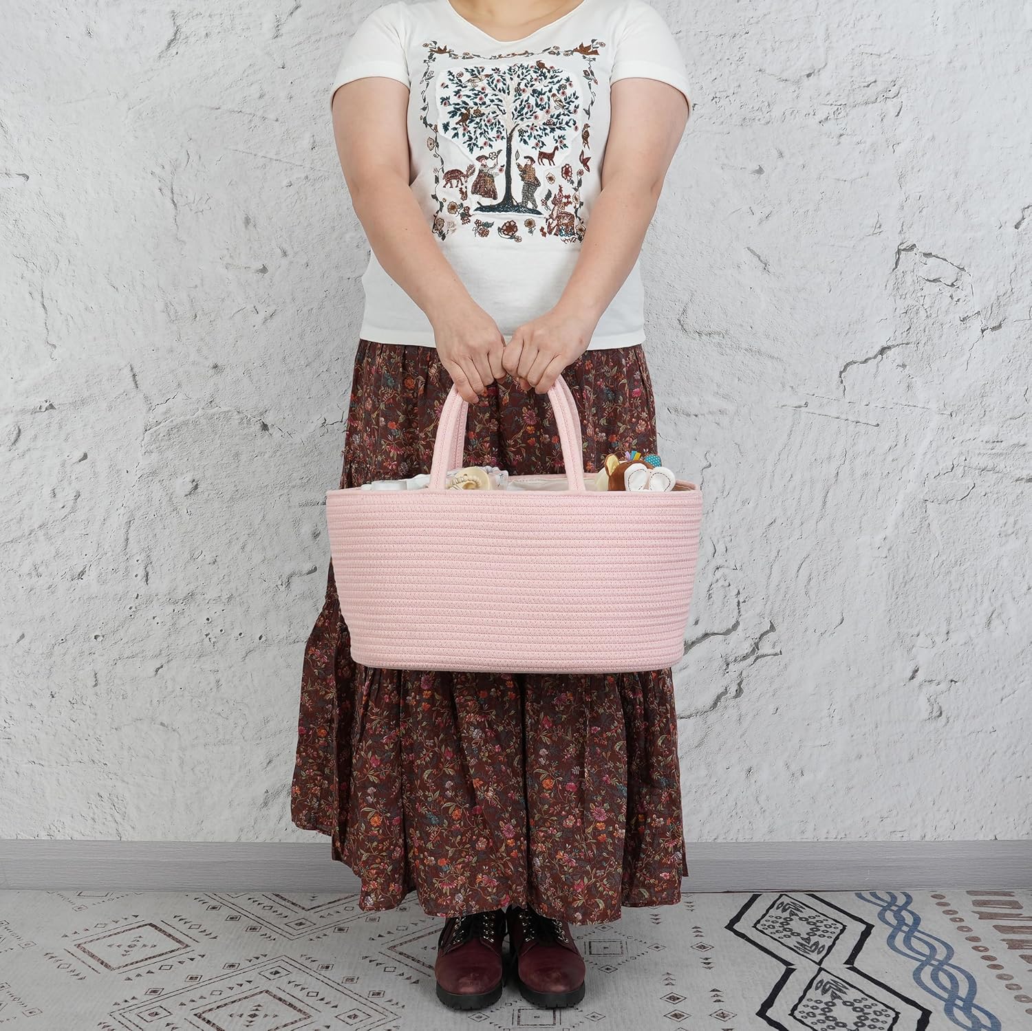 Diaper Caddy Organizer Cotton Rope Baby Basket Nursery Storage and Portable Tote Bag for Car Ideal Baby Shower Gifts and Registry Must-Have for Newborn Essentials large coral pink