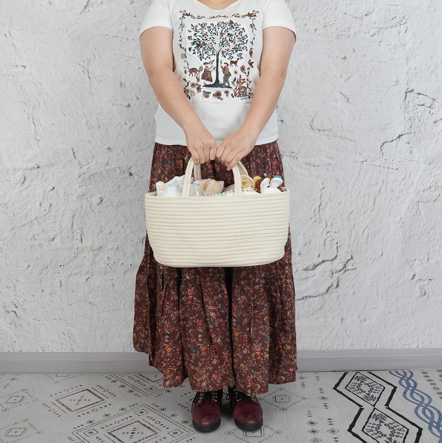 Diaper Caddy Organizer Cotton Rope Baby Basket Nursery Storage and Portable Tote Bag for Car Ideal Baby Shower Gifts and Registry Must-Have for Newborn Essentials beige