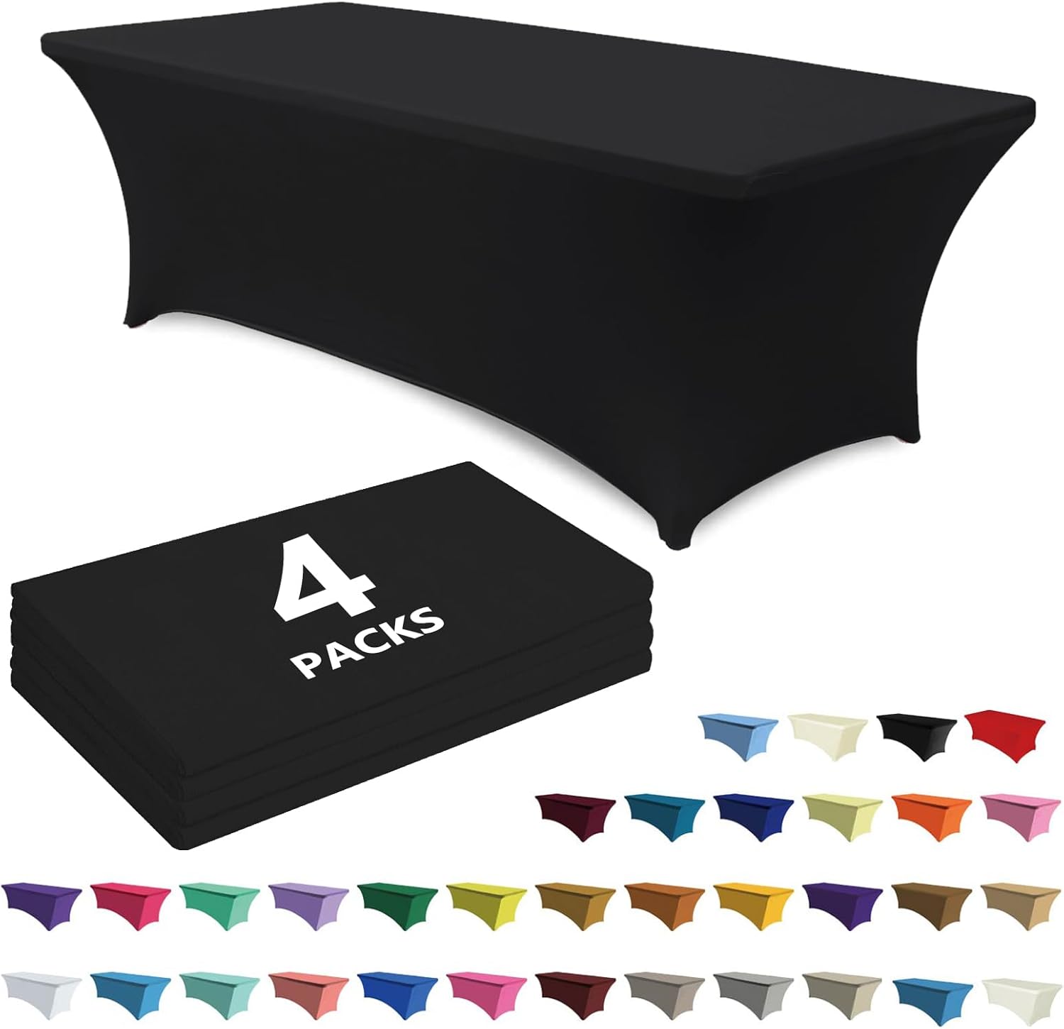 ABCCANOPY 4 Pack 4 FT Black Spandex Table Cover Stretch Fitted Wrinkle Resistant Tablecloth Reuse for Rectangular Folding Table Patry Event Wedding Banquet Protector