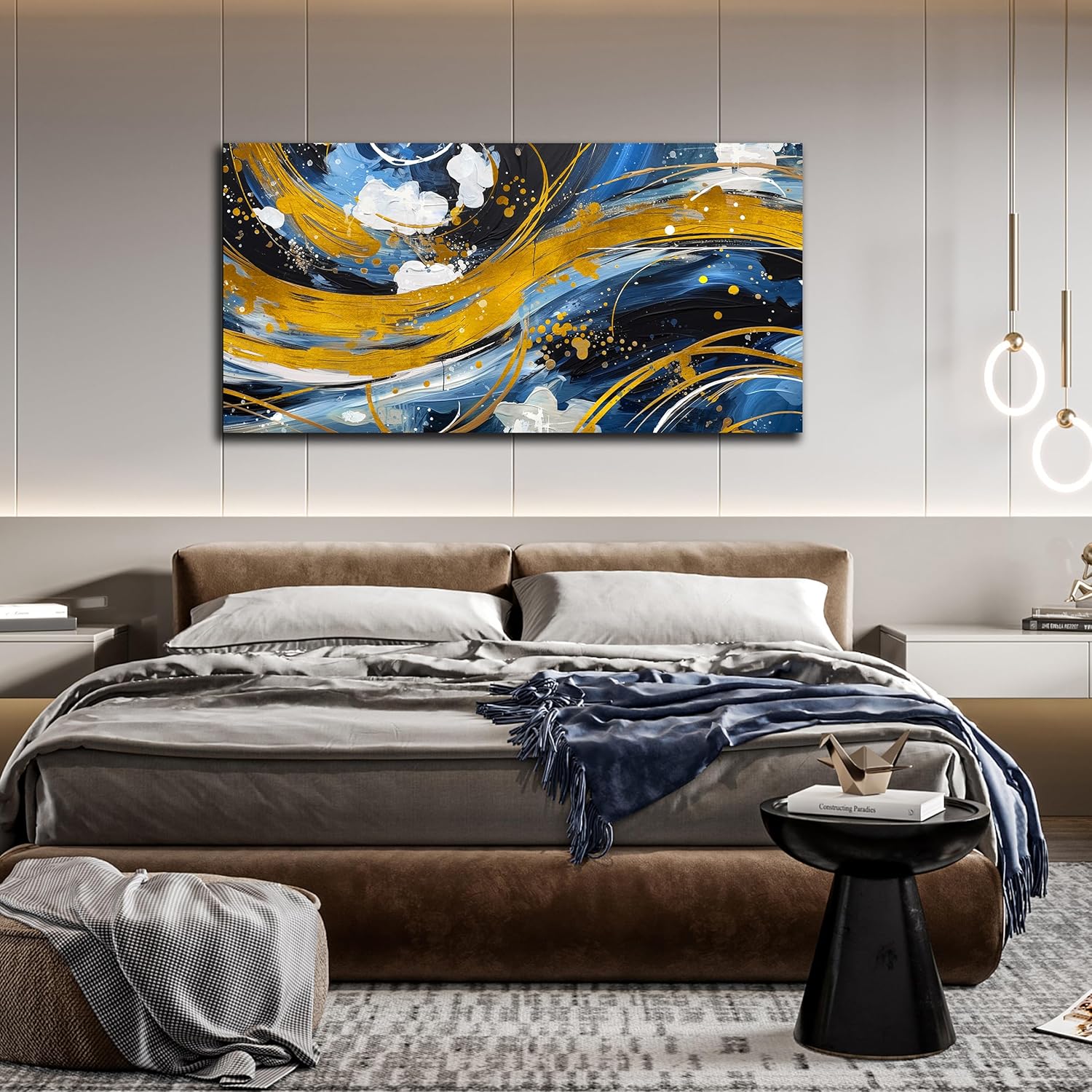 ENTANUB Abstract Canvas Wall Art for Living Room, Gold and Blue Wall Decor for Bedroom, Print Paintings Artwork, Size 29x59 Inches