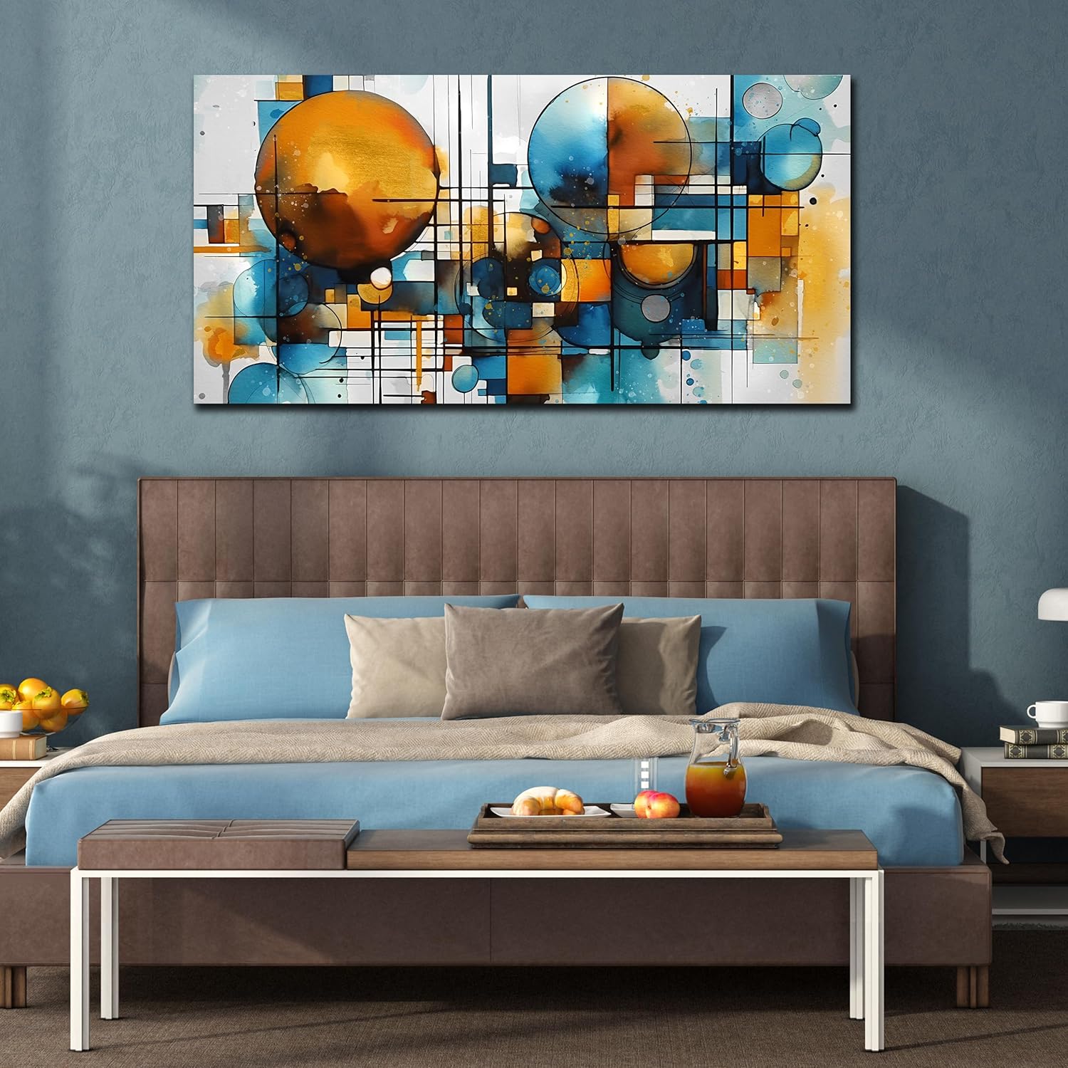 ENTANUB Abstract Wall Art for Living Room, Circle Canvas Wall Decor for Bedroom, Orange and Blue Print Paintings Artwork, Size 29x59 Inches