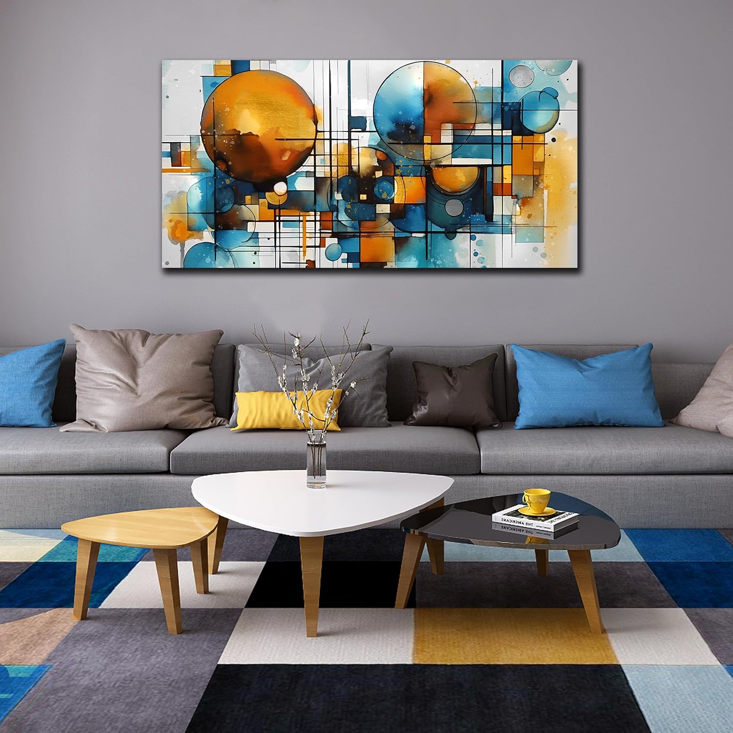 ENTANUB Abstract Canvas Wall Art for Living Room, Circle Wall Decor for Bedroom, Orange and Blue Canvas Print Paintings Artwork, Size 24x48 Inches