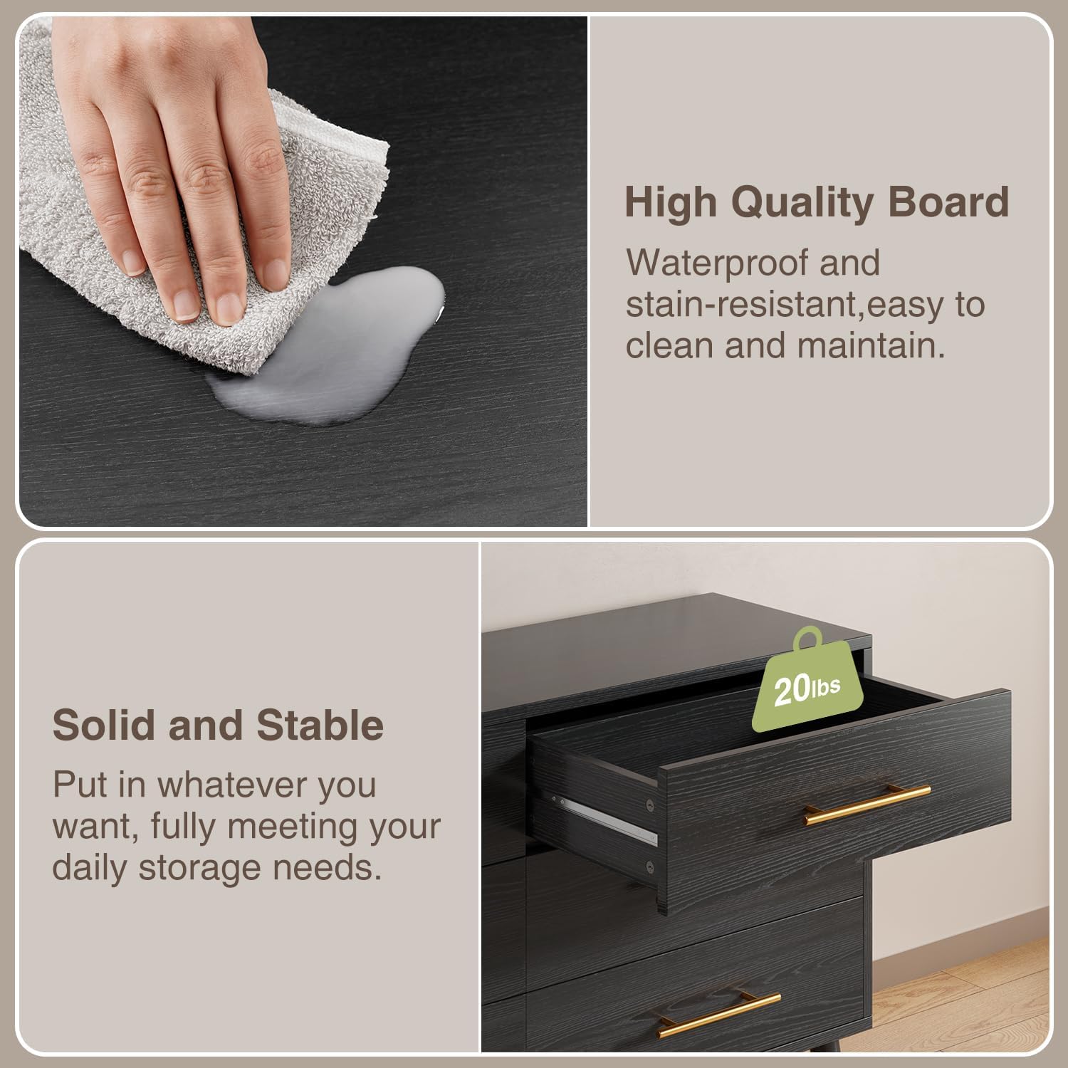 - Durable Dresser: This chest of drawers is made of quality engineered wood, 5 wooden legs provide strong support to make the dresser more stable