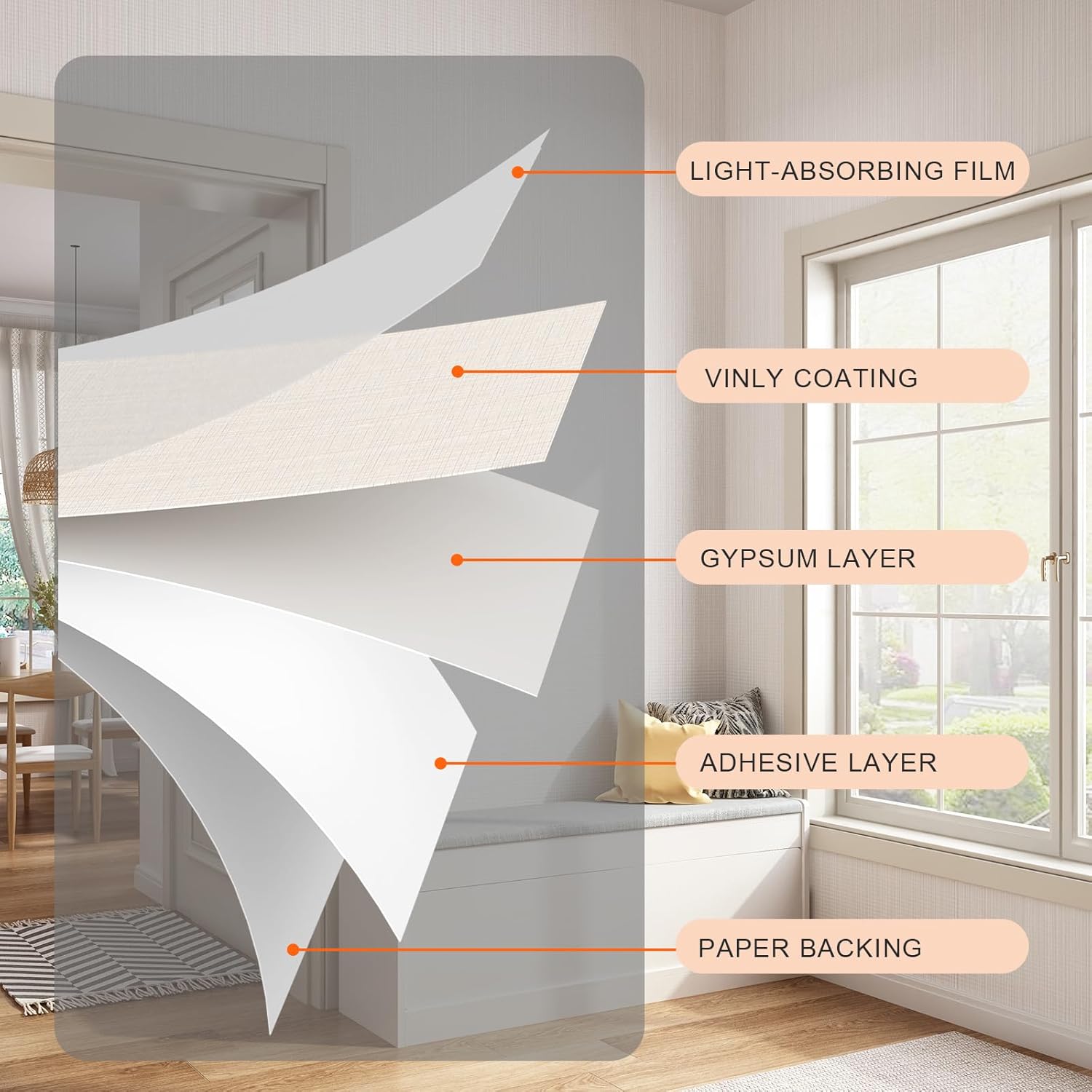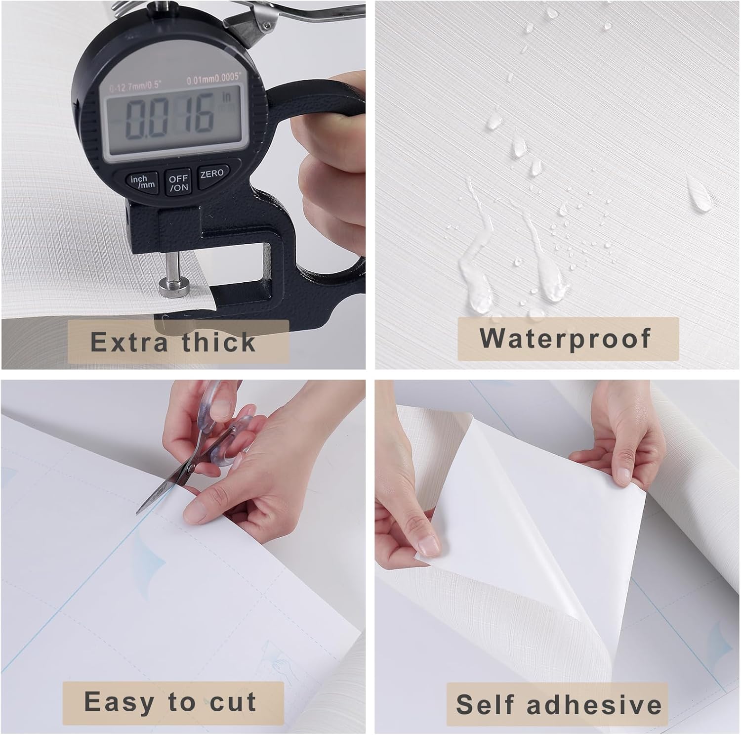 - FEATURES--Vinyl/pvc material. Thicker than normal wallpaper, full of real texture,self adhesive, easy to apply. Waterproof . Indoor use, ideal for most smooth flat surfaces such as bedroom,living room,cabinets,furniture,etc.